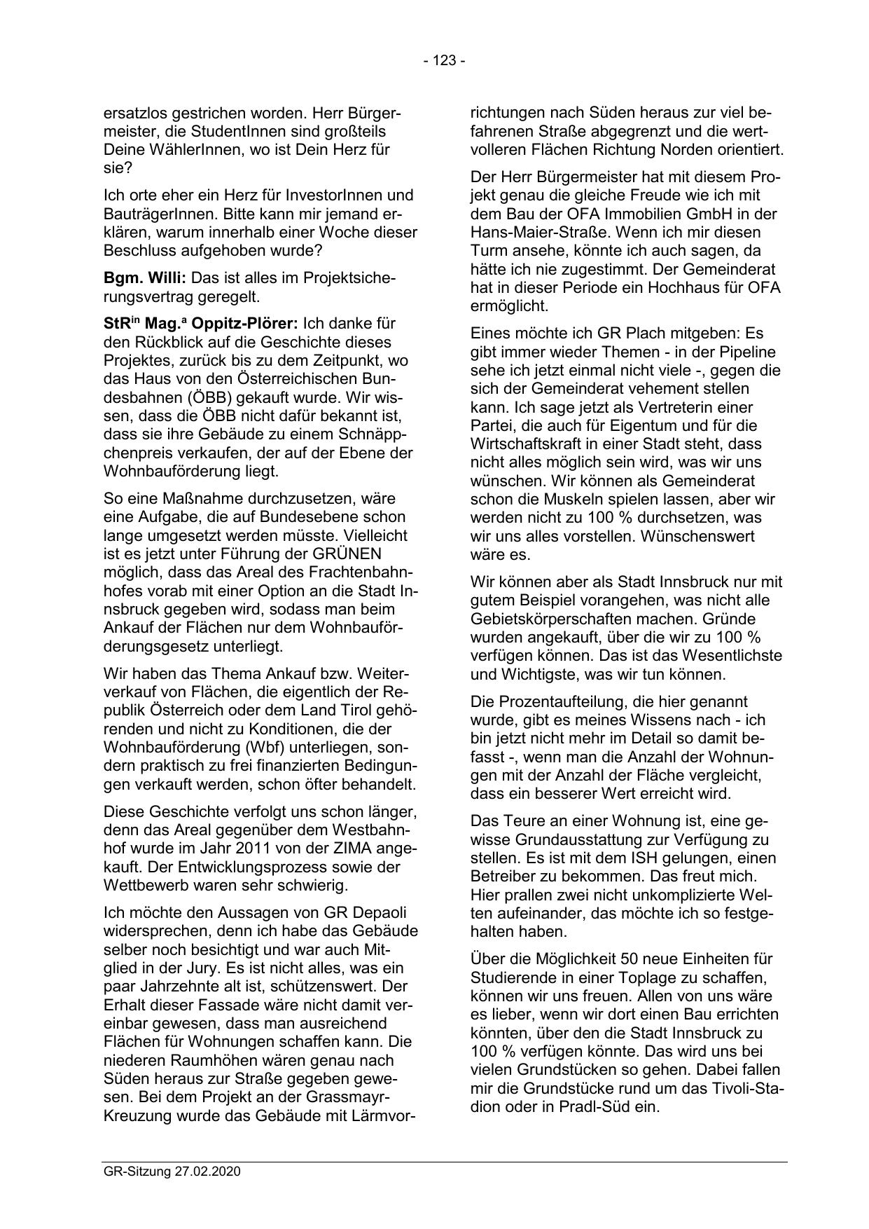 Süden heraus zur Straße gegeben gewesen. Bei dem Projekt an der GrassmayrKreuzung wurde das Gebäude mit LärmvorGR-Sitzung 27.02.2020