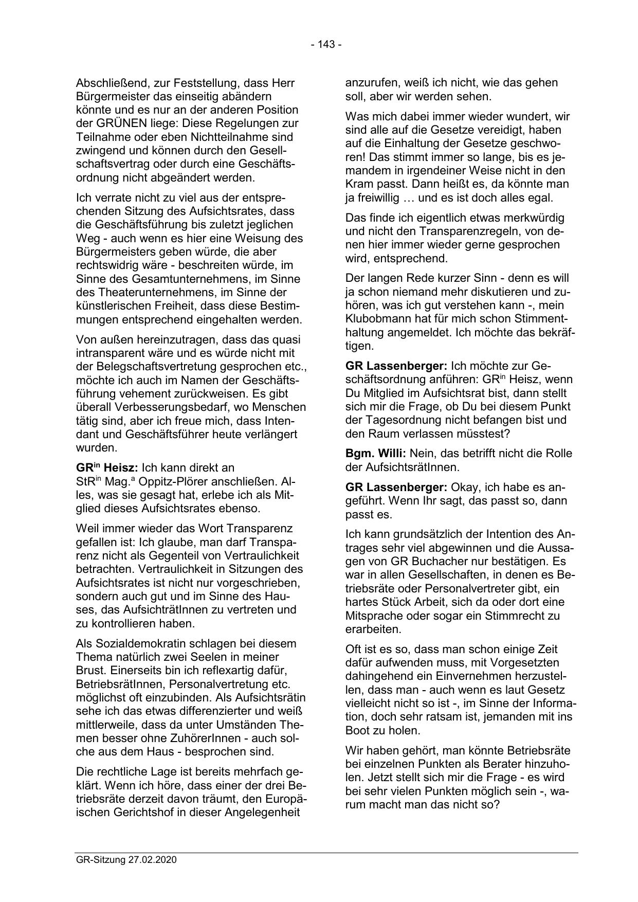 GR Lassenberger: Ich möchte zur Geschäftsordnung anführen: GRin Heisz, wenn