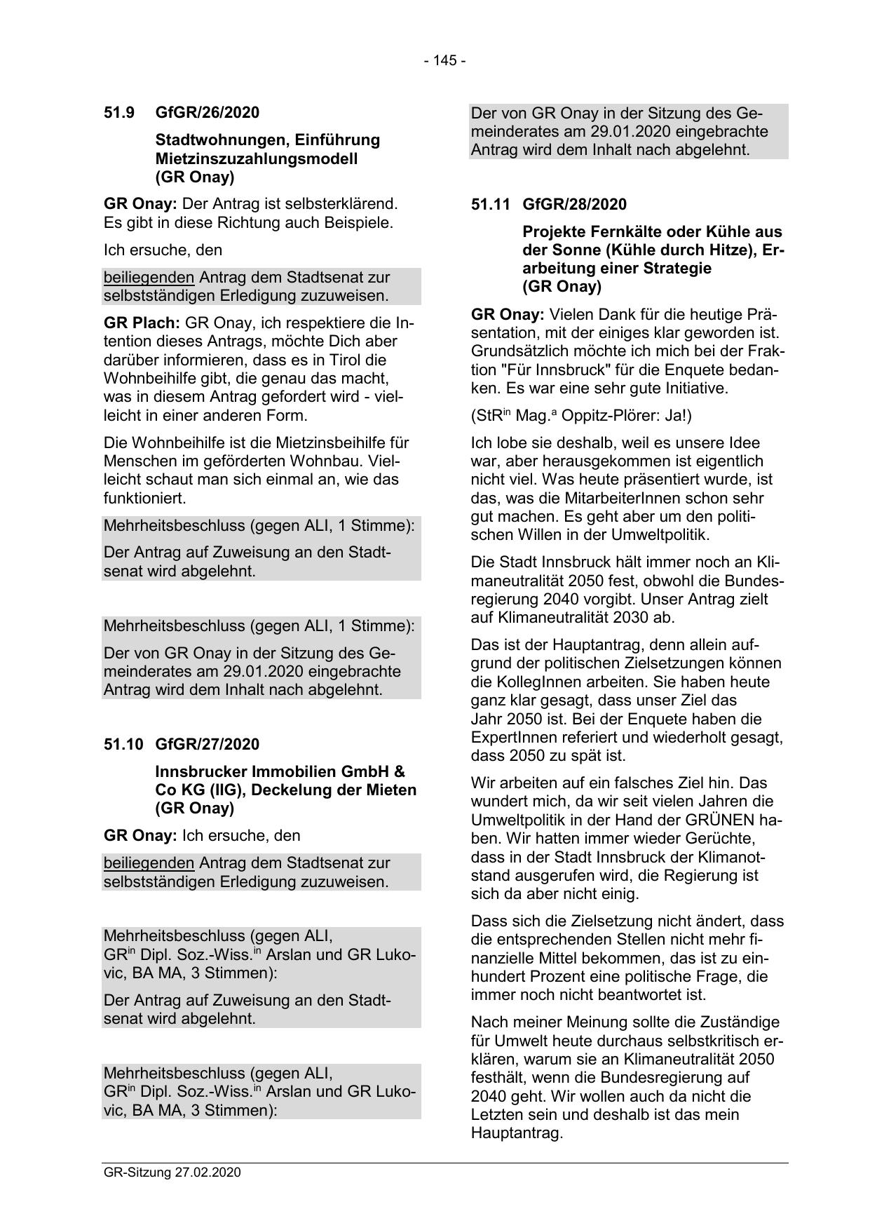 Der von GR Onay in der Sitzung des Gemeinderates am 29.01.2020 eingebrachte