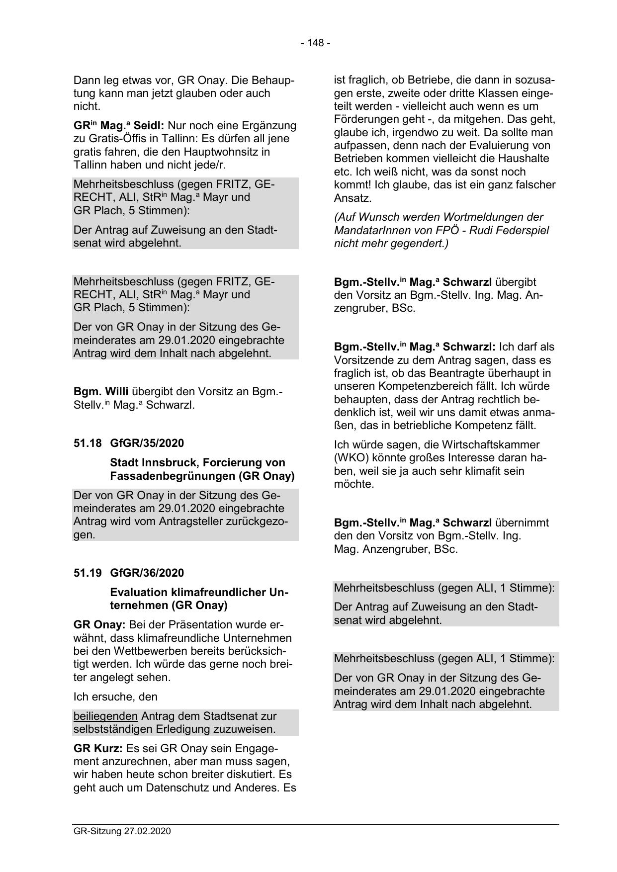 Mehrheitsbeschluss (gegen FRITZ, GERECHT, ALI, StRin Mag.a Mayr und