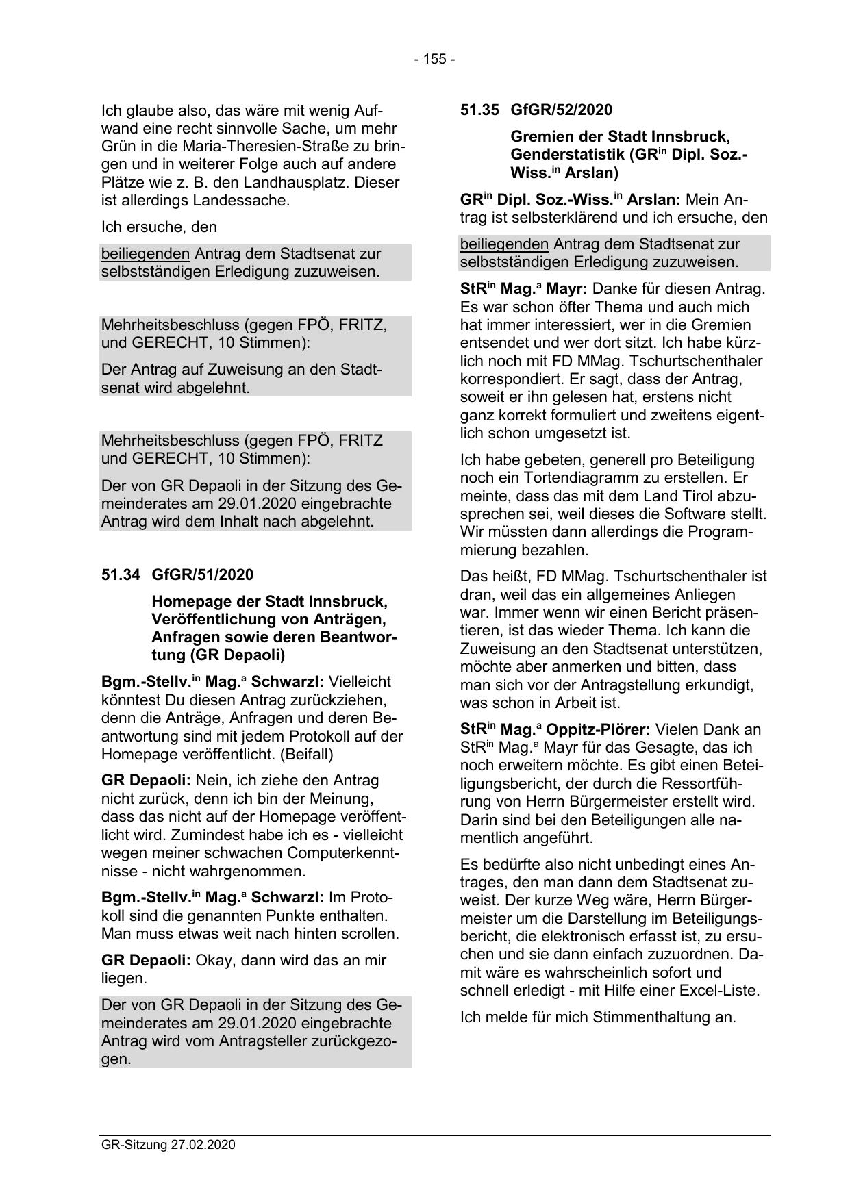 Der von GR Depaoli in der Sitzung des Gemeinderates am 29.01.2020 eingebrachte