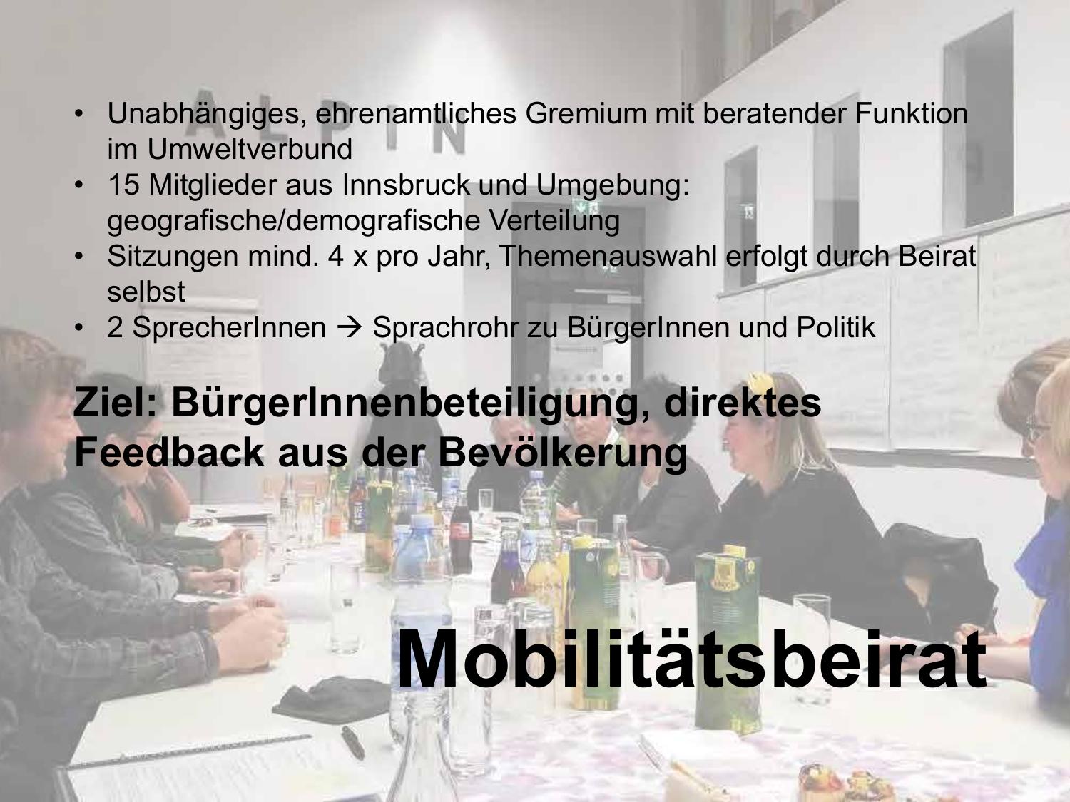 • Sitzungen mind. 4 x pro Jahr, Themenauswahl erfolgt durch Beirat