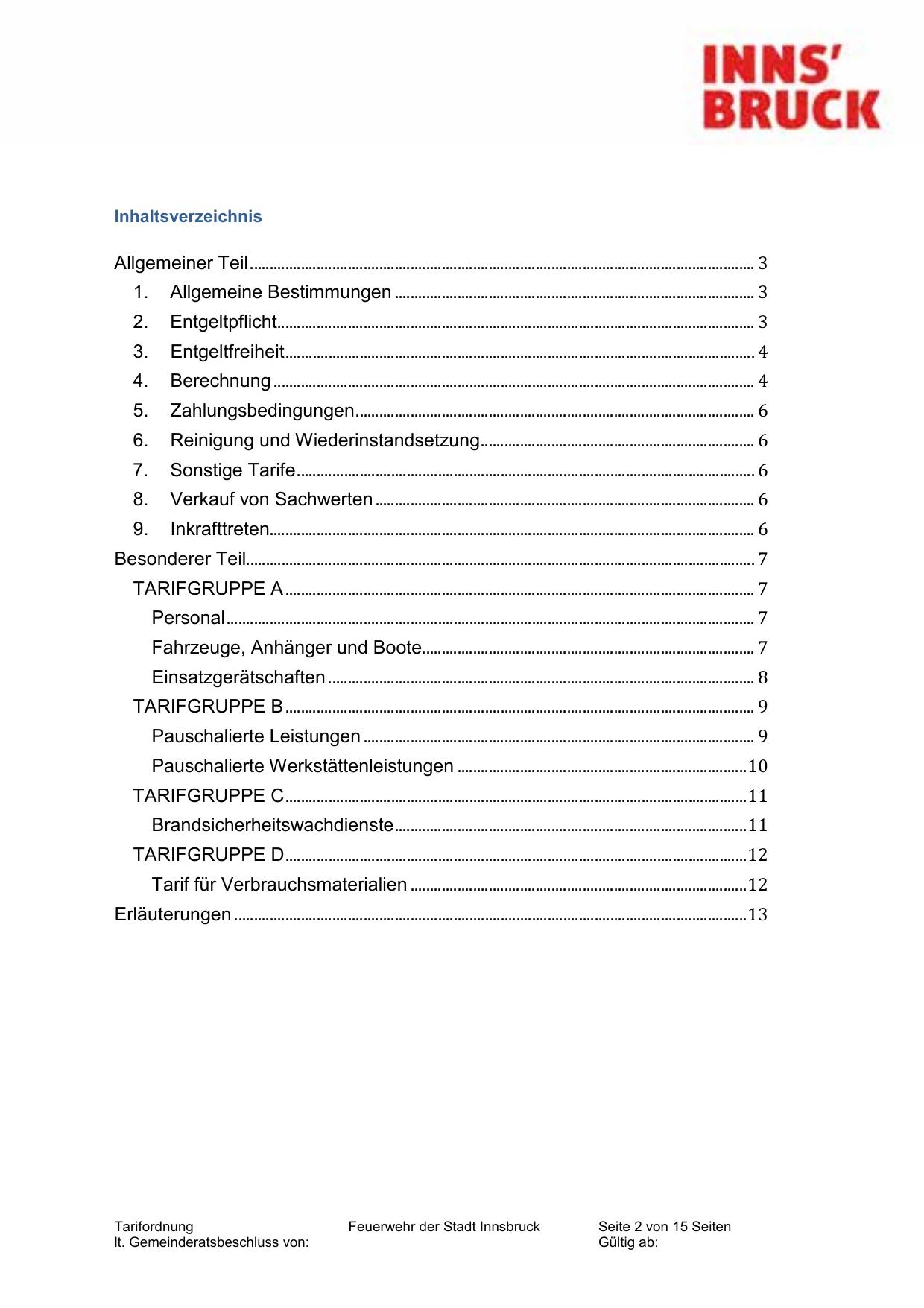 Tarif für Verbrauchsmaterialien ...................................................................................... 12