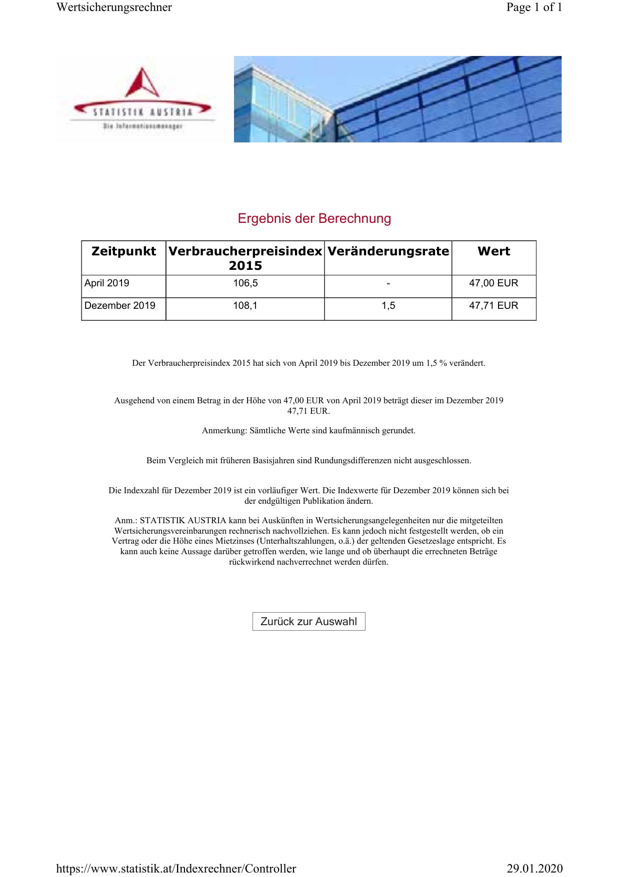 Anm.: STATISTIK AUSTRIA kann bei Auskünften in Wertsicherungsangelegenheiten nur die mitgeteilten