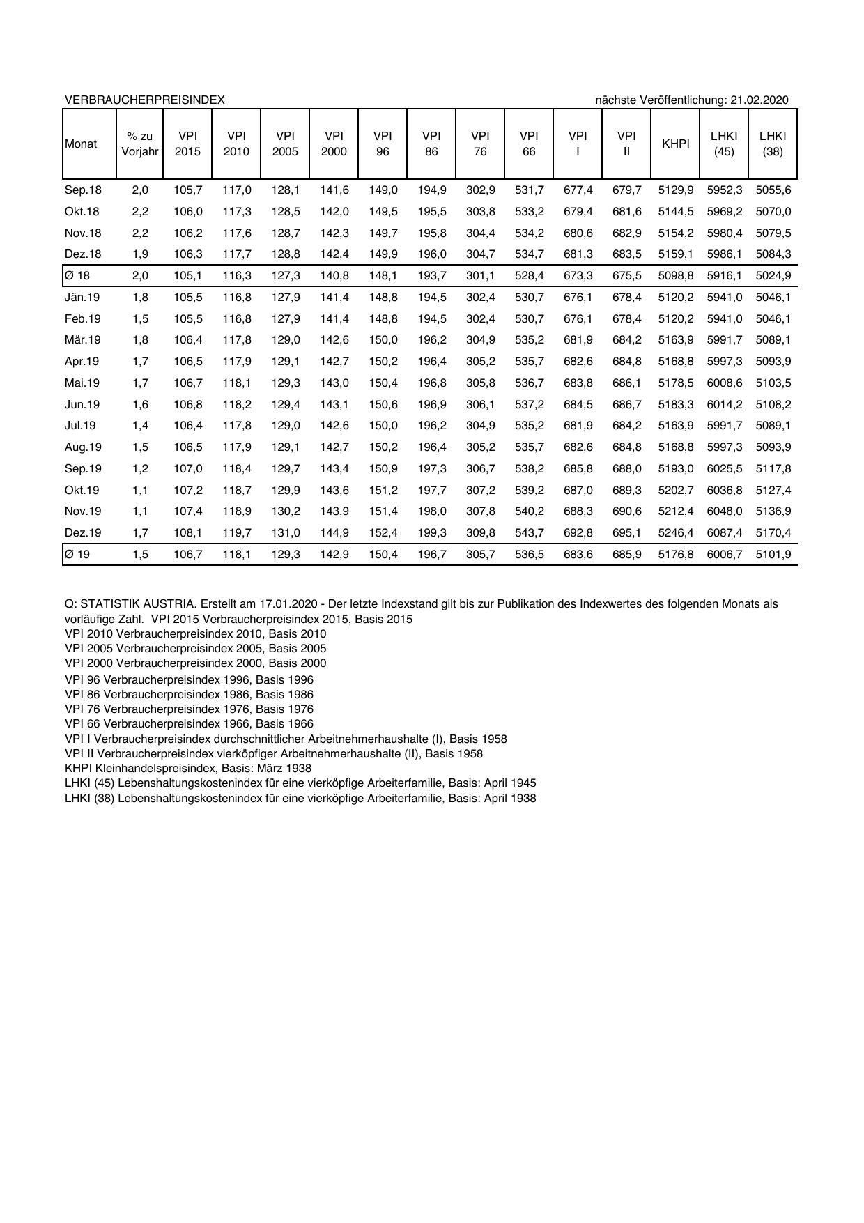 Q: STATISTIK AUSTRIA. Erstellt am 17.01.2020 - Der letzte Indexstand gilt bis zur Publikation des Indexwertes des folgenden Monats als