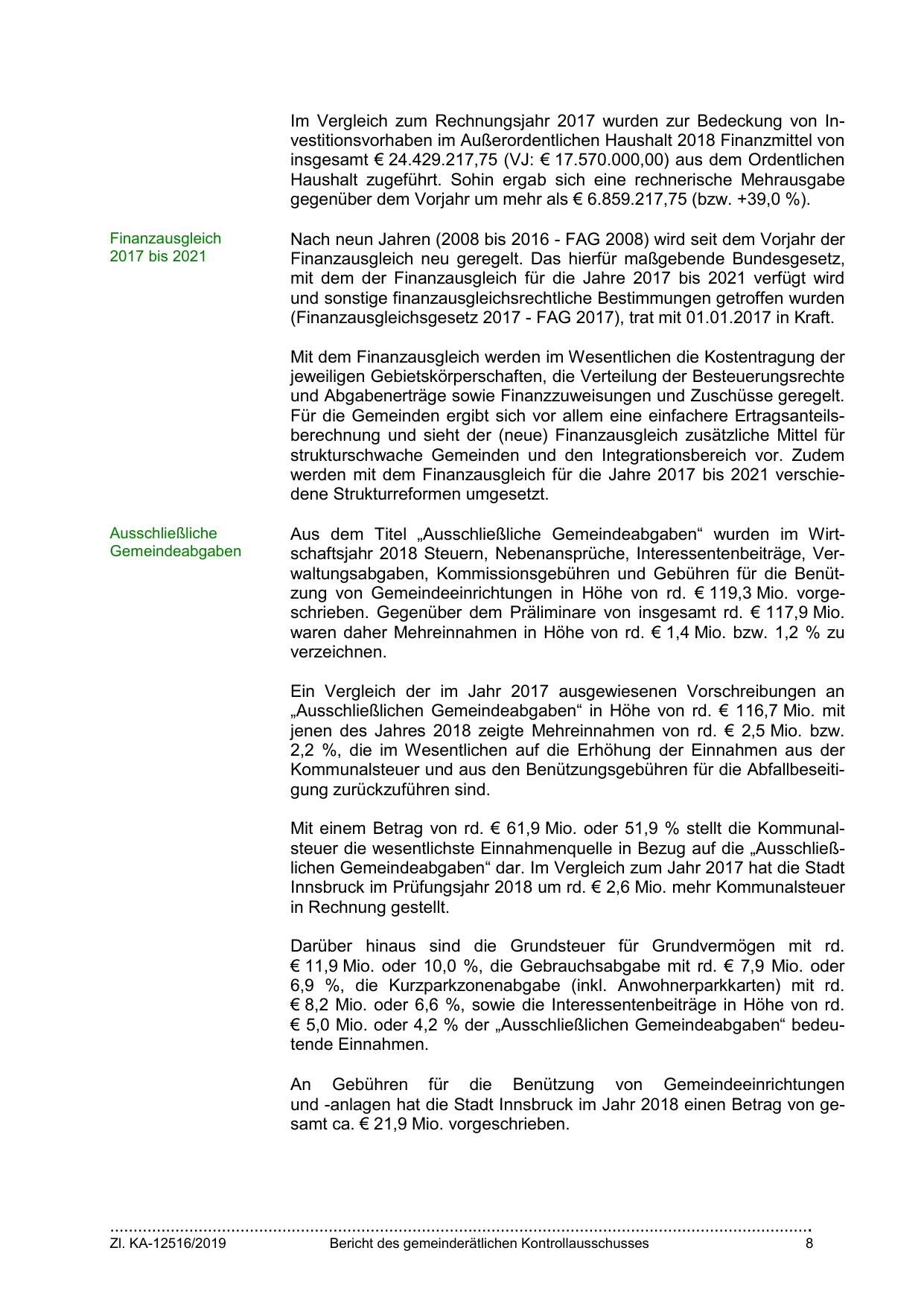 Innsbruck im Prüfungsjahr 2018 um rd. € 2,6 Mio. mehr Kommunalsteuer
