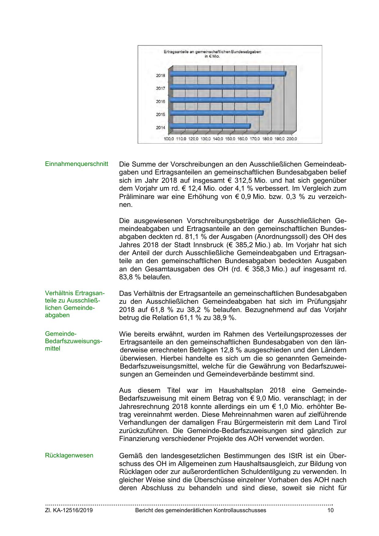 Jahres 2018 der Stadt Innsbruck (€ 385,2 Mio.) ab. Im Vorjahr hat sich