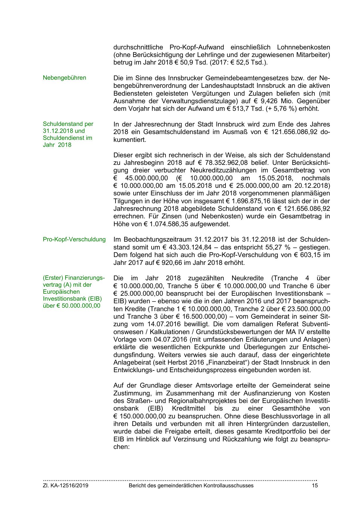 EIB) wurden – ebenso wie die in den Jahren 2016 und 2017 beanspruchten Kredite (Tranche 1 € 10.000.000,00, Tranche 2 über € 23.500.000,00
