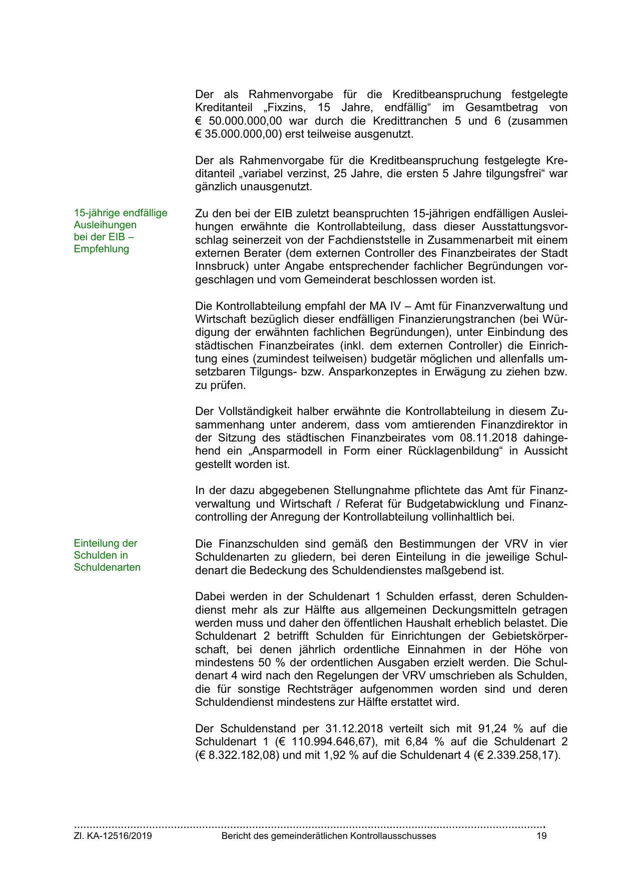 städtischen Finanzbeirates (inkl. dem externen Controller) die Einrichtung eines (zumindest teilweisen) budgetär möglichen und allenfalls umsetzbaren Tilgungs- bzw. Ansparkonzeptes in Erwägung zu ziehen bzw.