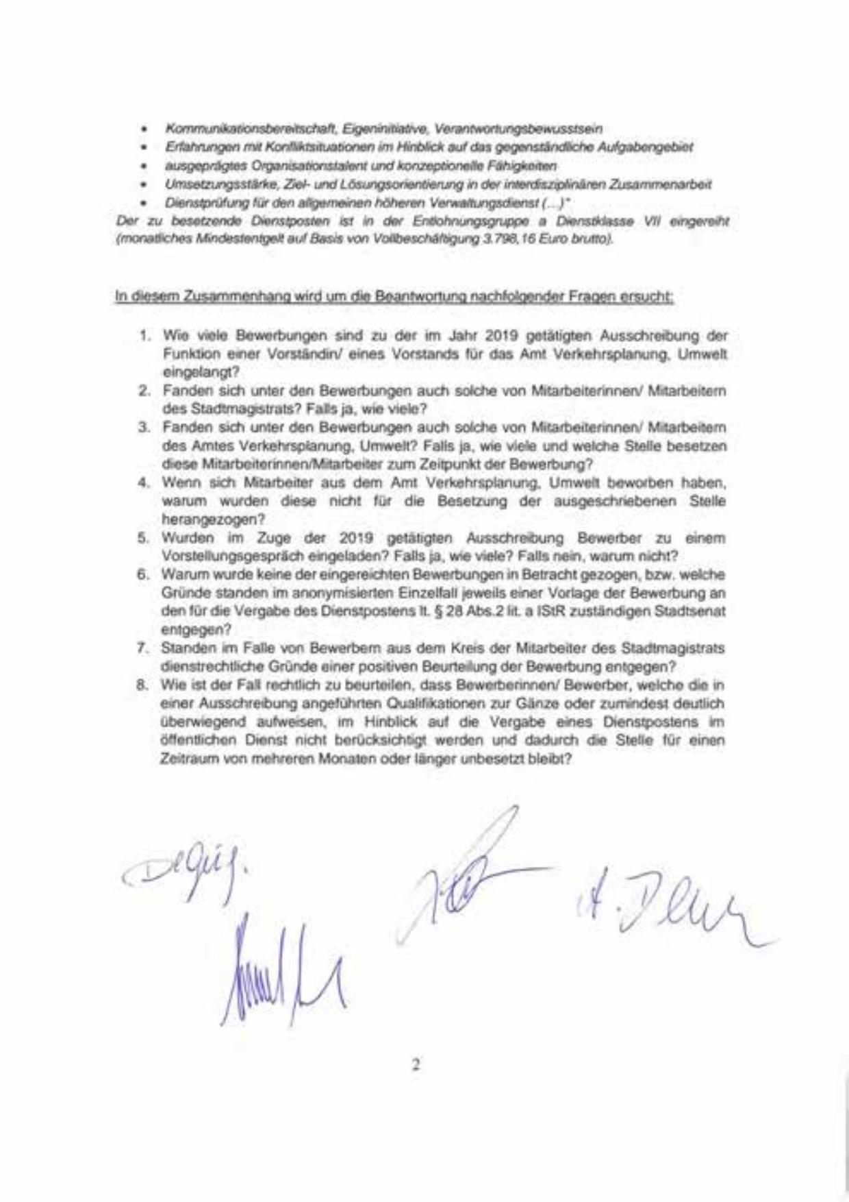 den für die Vergabe des Dienstpostens lt. § 28 Abs.2 lit. a IStR zuständigen Stadtsenat