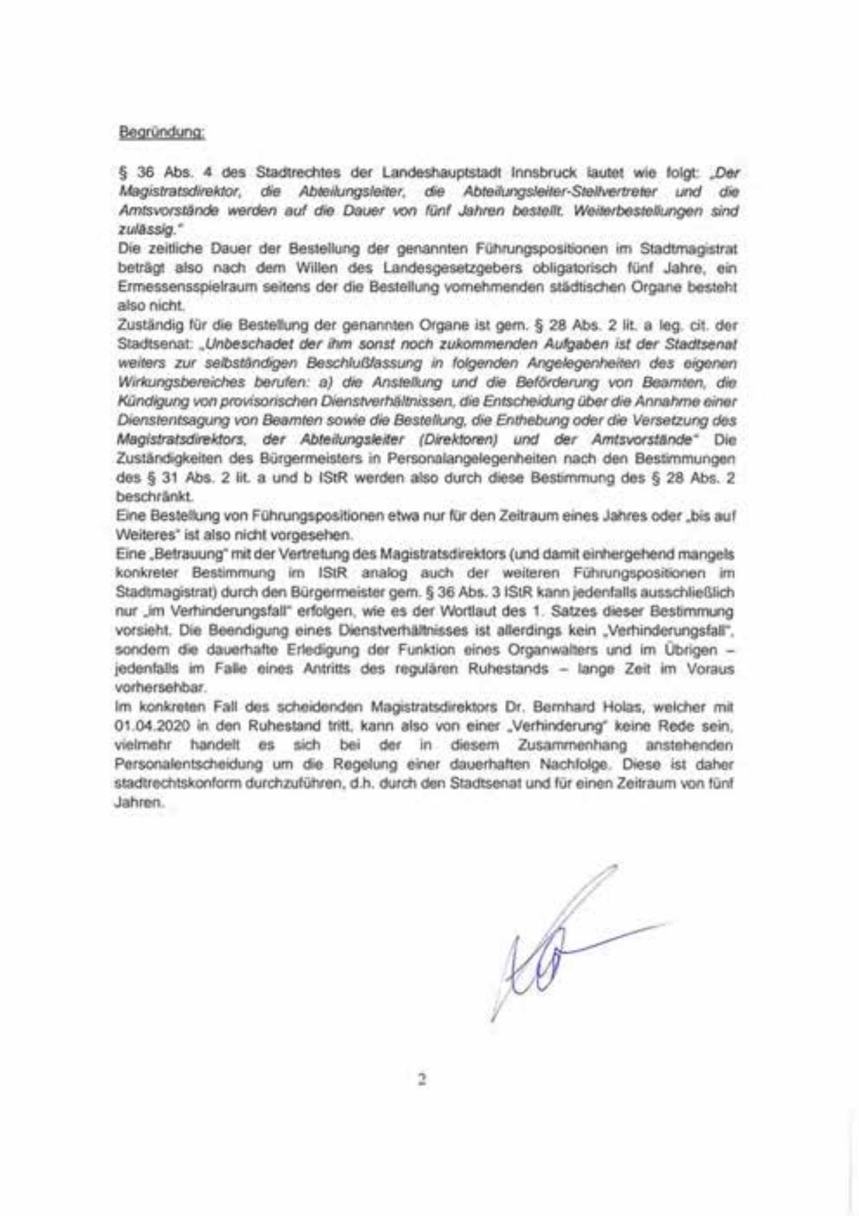 § 36 Abs. 4 des Stadtrechtes der Landeshauptstadt Innsbruck lautet wie folgt: ,.Der