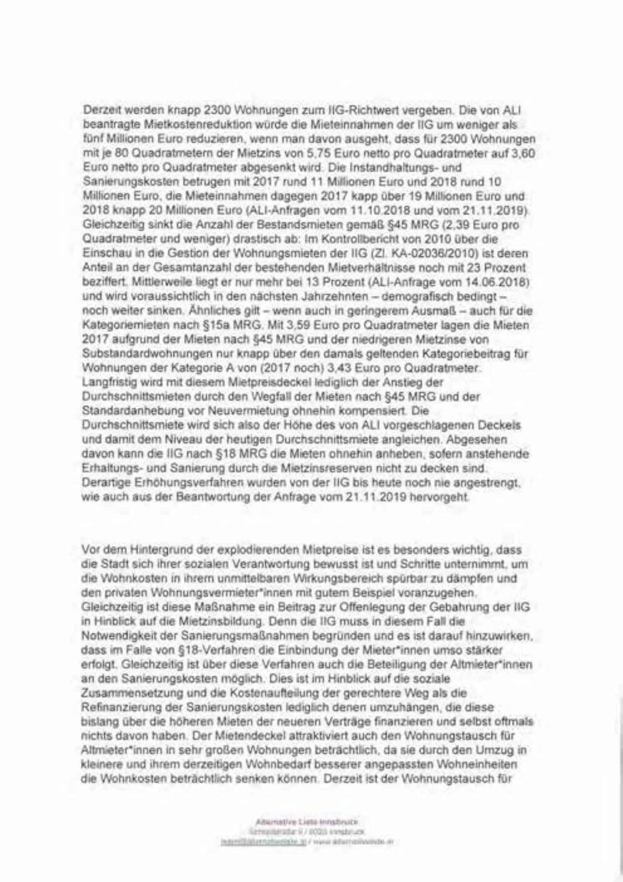beantragte Mietkostenreduktion würde die Mieteinnahmen der IIG um weniger als