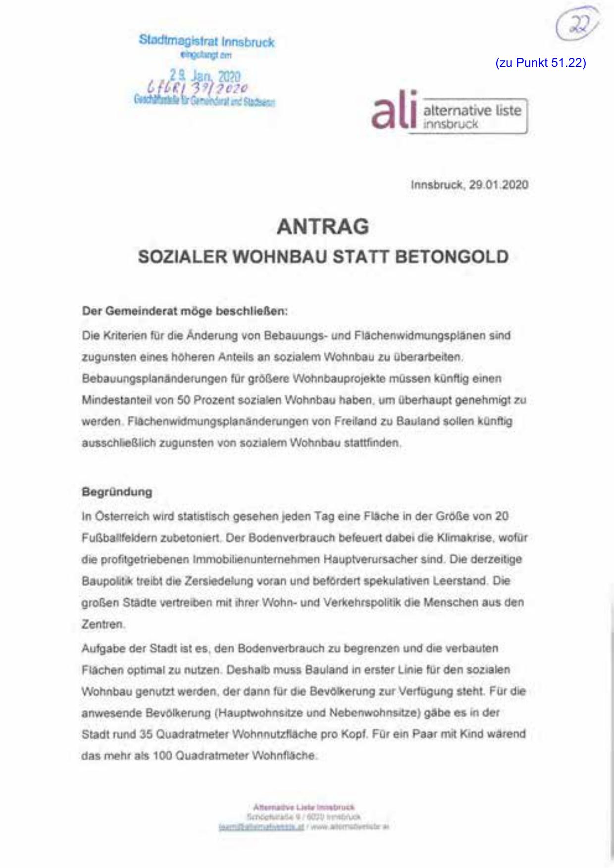 Mindestanteil von 50 Prozent sozialen Wohnbau haben, um überhaupt genehmigt zu