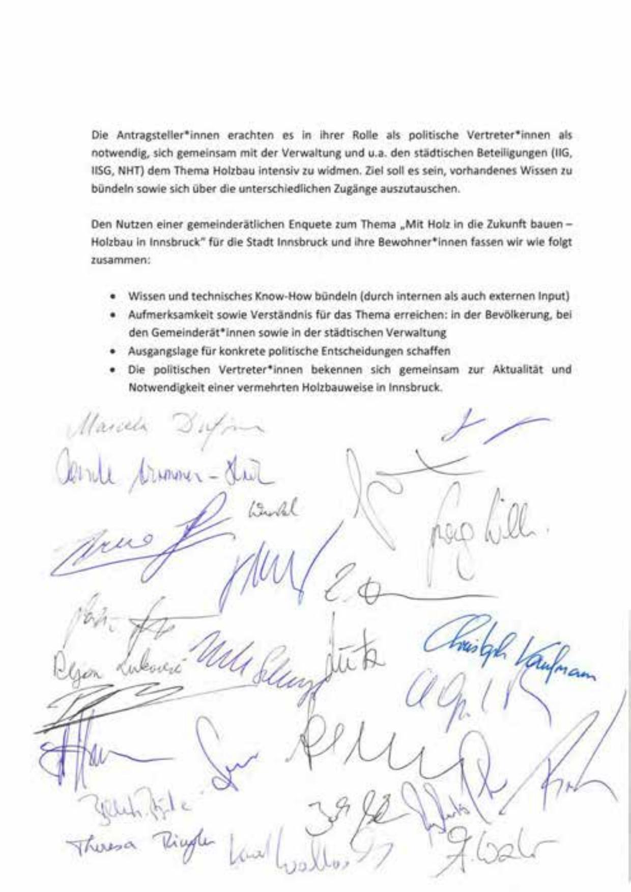 Den Nutzen einer gemeinderätlichen Enquete zum Thema „Mit Holz in die Zukunft bauen Holzbau in Innsbruck" für die Stadt Innsbruck und ihre Bewohner*innen fassen wir wie folgt