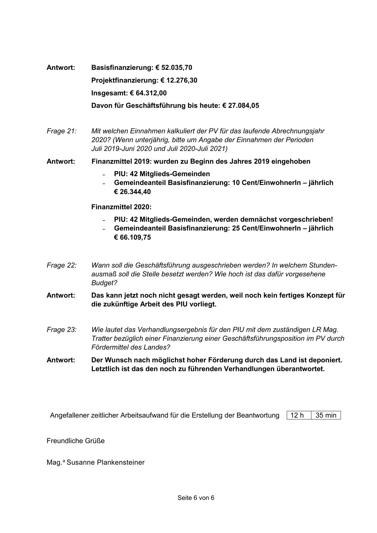 Wie lautet das Verhandlungsergebnis für den PIU mit dem zuständigen LR Mag.