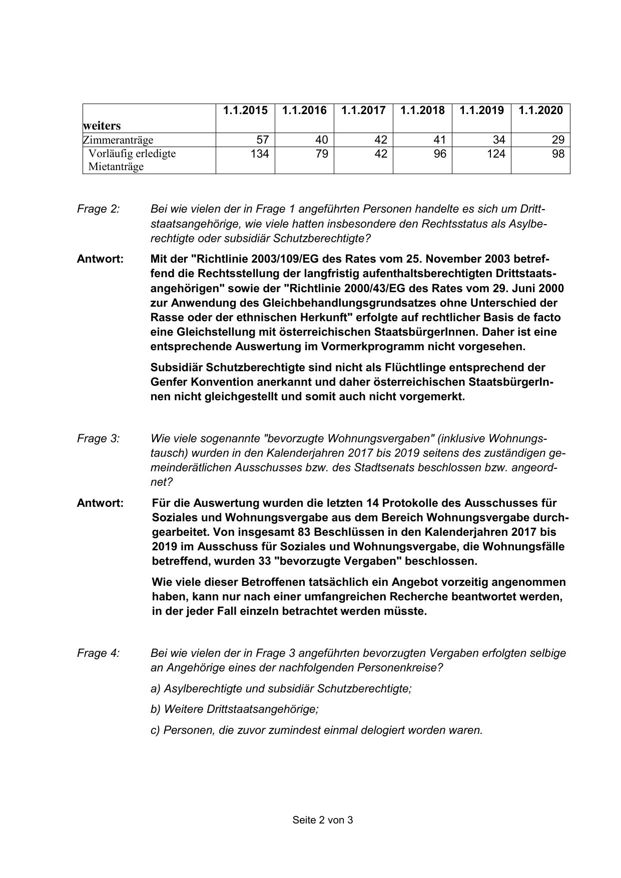 Soziales und Wohnungsvergabe aus dem Bereich Wohnungsvergabe durchgearbeitet. Von insgesamt 83 Beschlüssen in den Kalenderjahren 2017 bis