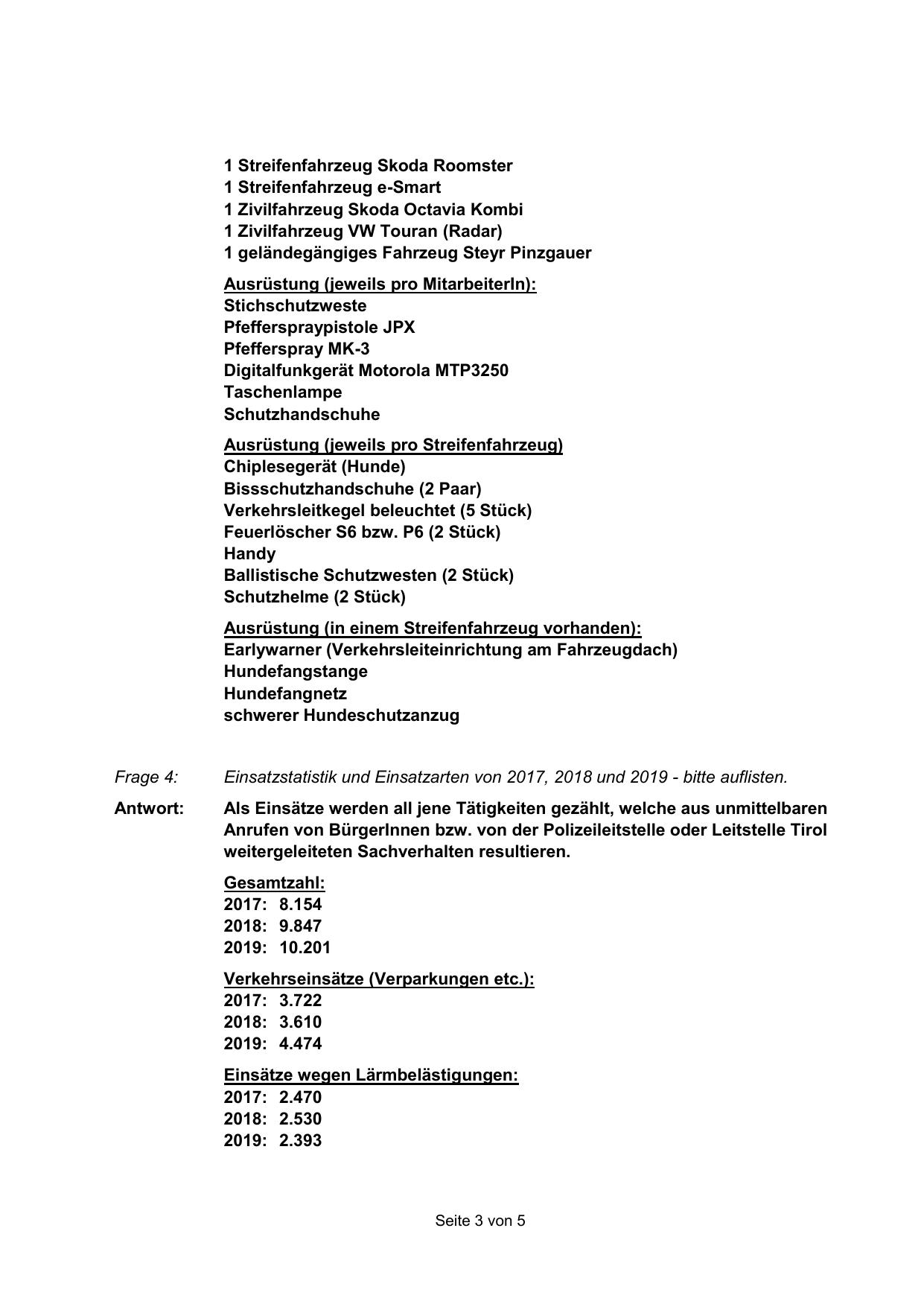 Ausrüstung (jeweils pro Streifenfahrzeug)