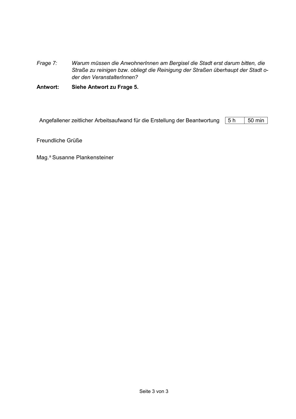 Angefallener zeitlicher Arbeitsaufwand für die Erstellung der Beantwortung