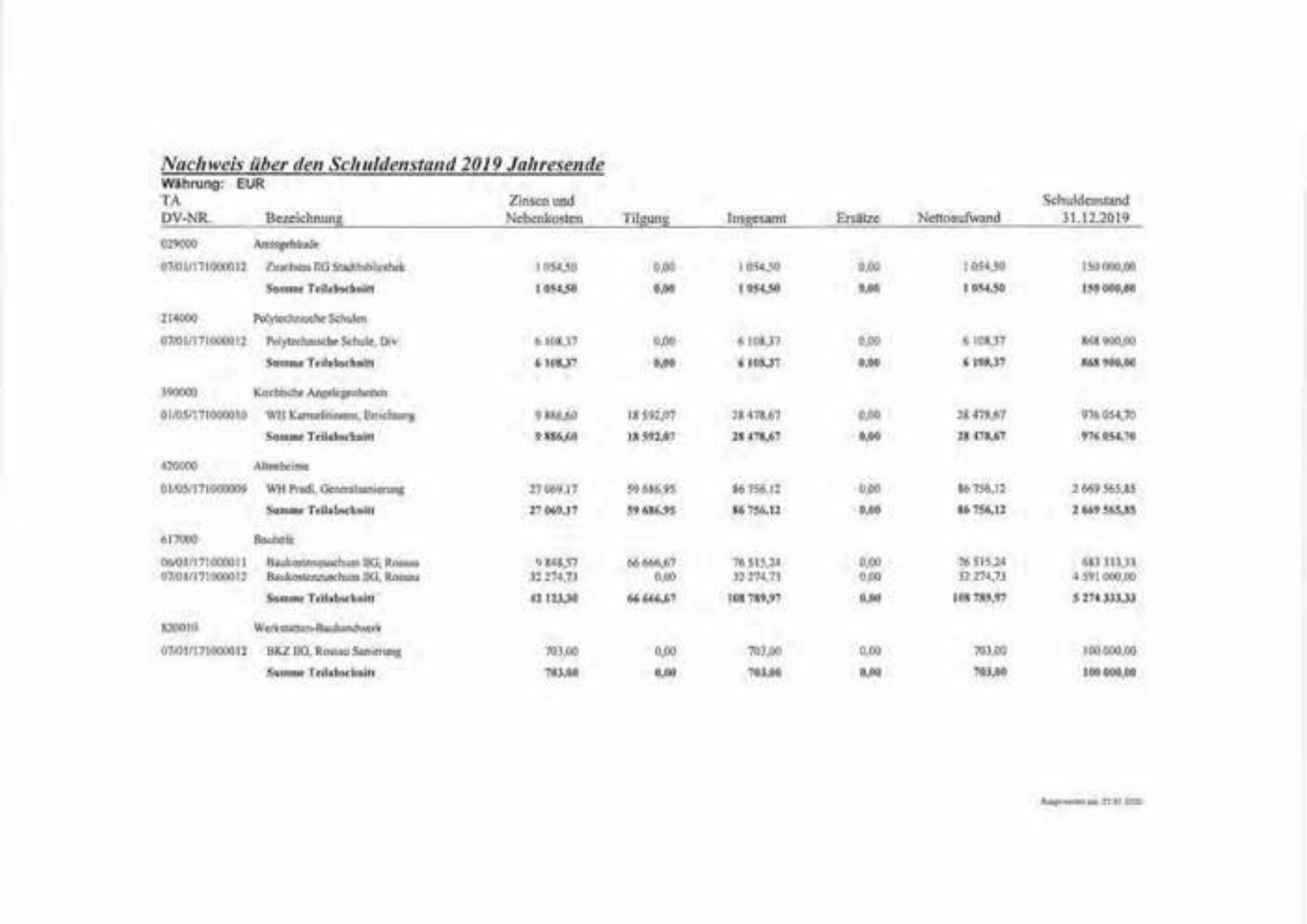 Nachweis iiber den Scltuldenstand 2019 Jahresende