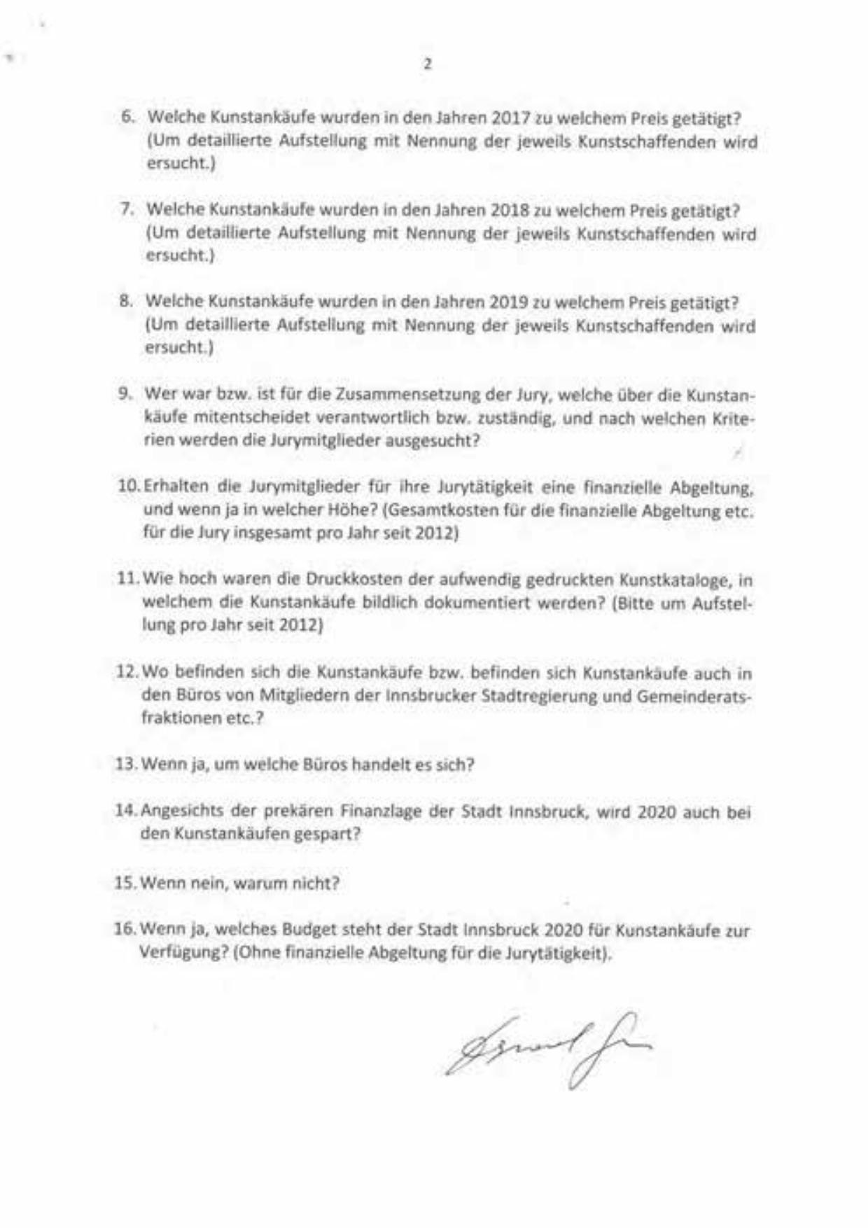 16. Wenn ja, welches Budget steht der Stadt Innsbruck 2020 für Kunstankäufe zur