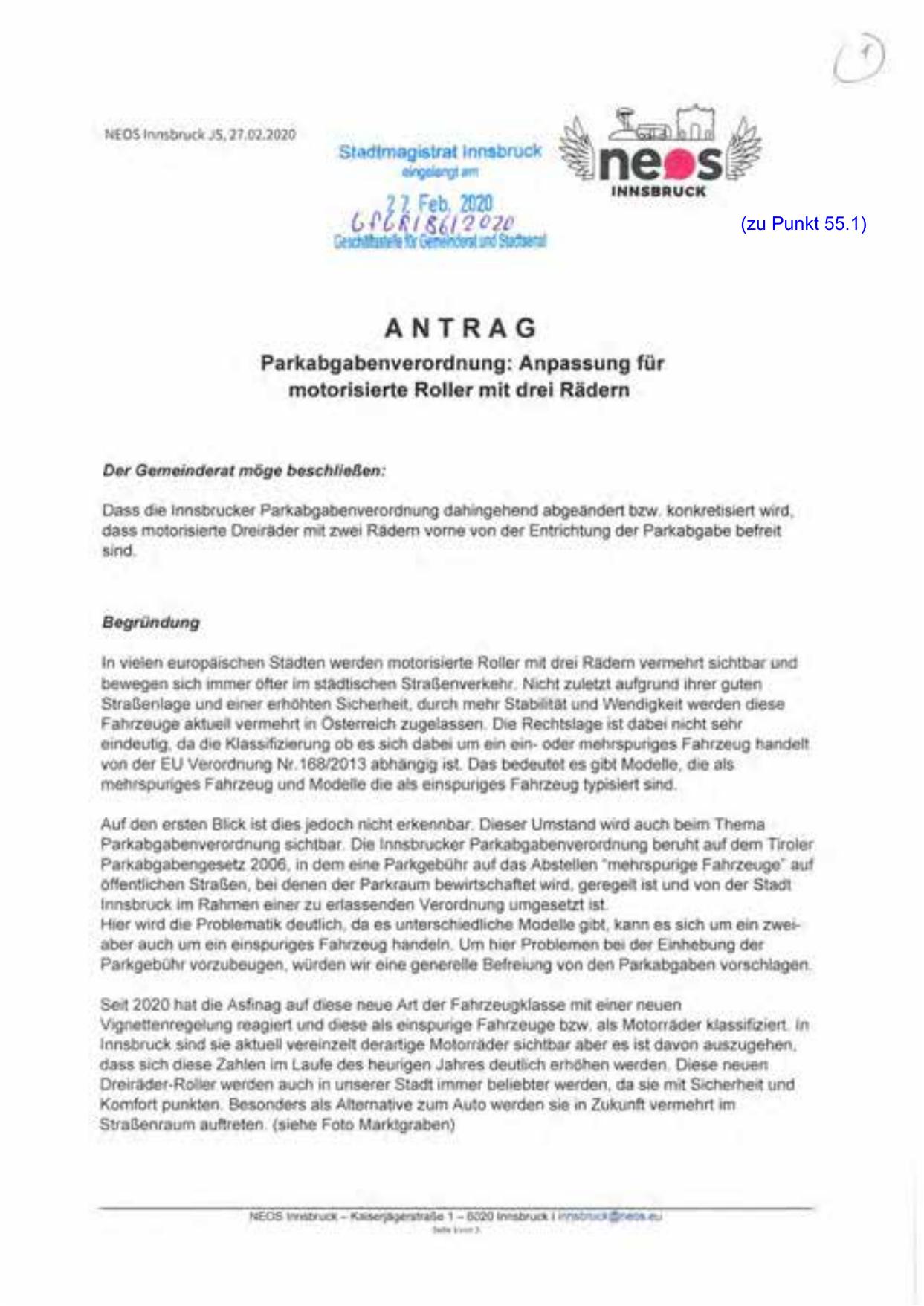 Dass die lnnsbrucker Parkabgabenverordnung dahingehend abgeändert bzw. konkretisiert wird,