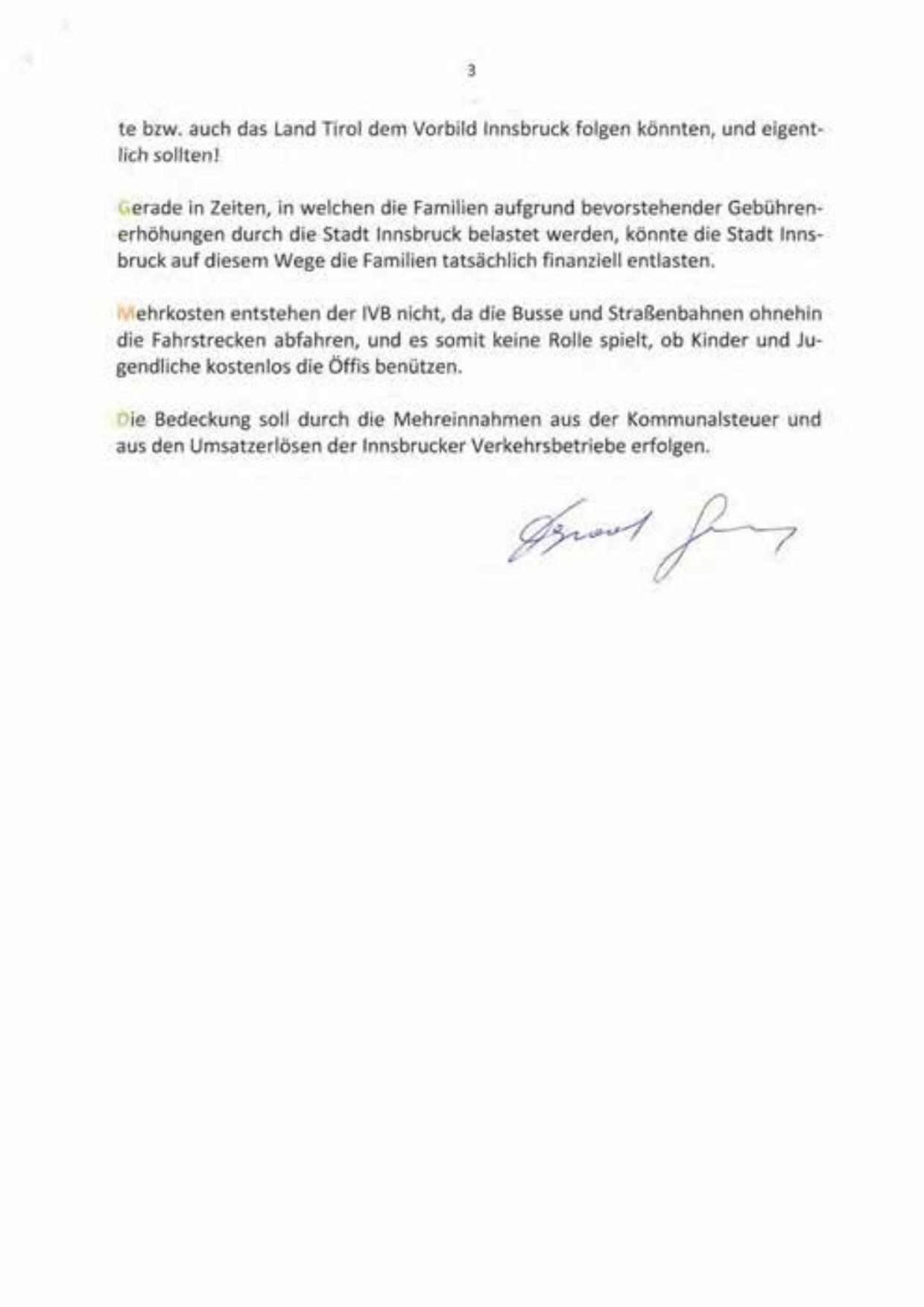 erade in Zeiten, in welchen die Familien aufgrund bevorstehender Gebührenerhöhungen durch die Stadt Innsbruck belastet werden, könnte die Stadt Innsbruck auf diesem Wege die Familien tatsächlich finanziell entlasten.
