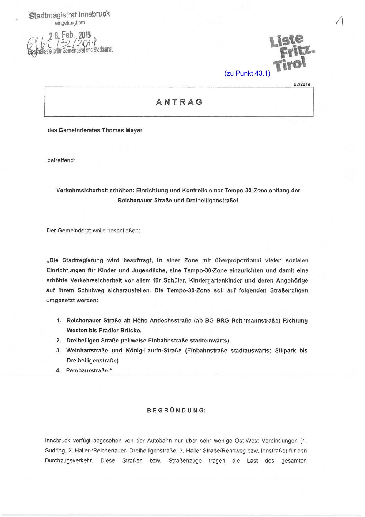 1. Reichenauer Straße ab Höhe Andechsstraße (ab BG BRG Reithmannstraße) Richtung