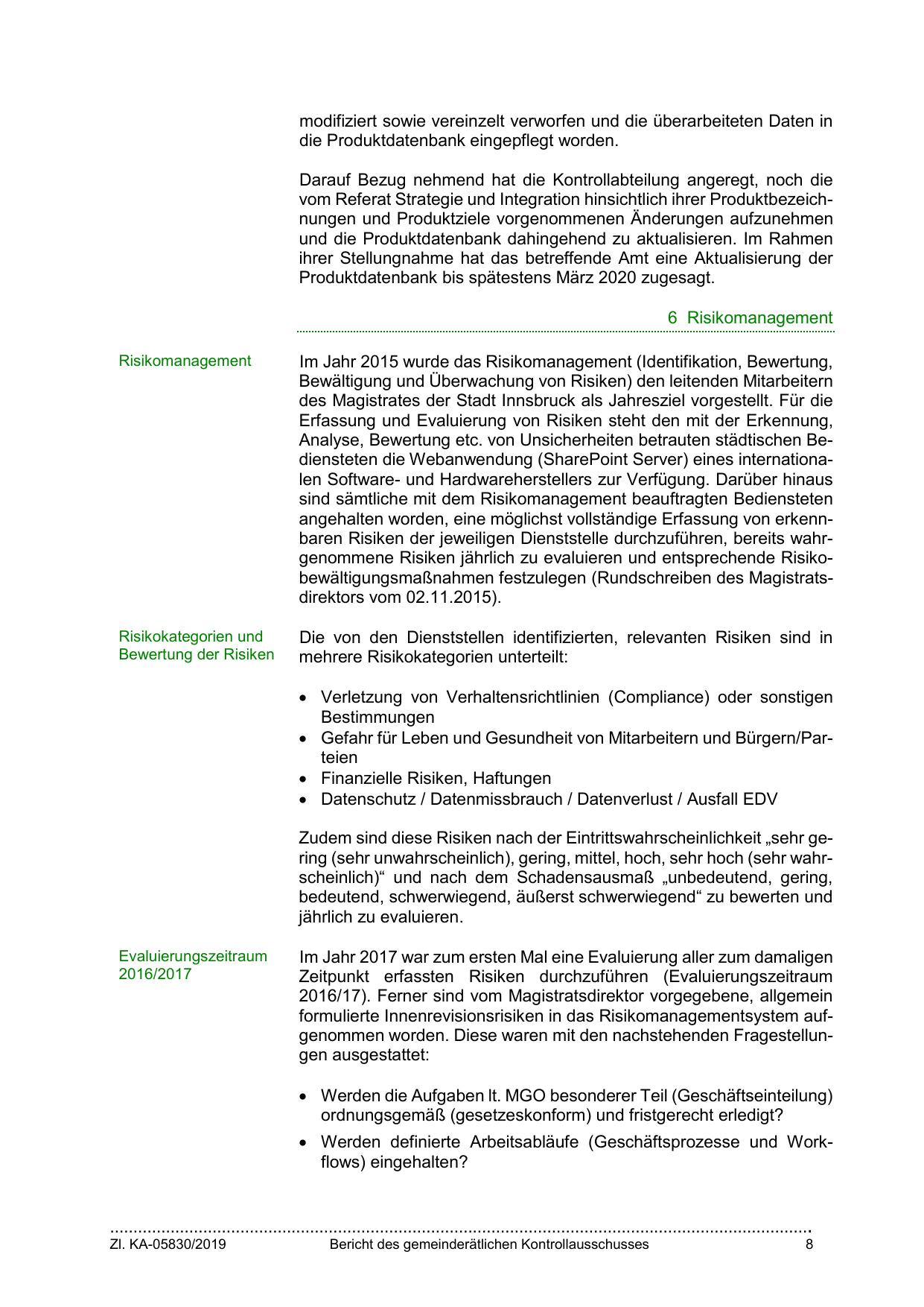 angehalten worden, eine möglichst vollständige Erfassung von erkennbaren Risiken der jeweiligen Dienststelle durchzuführen, bereits wahrgenommene Risiken jährlich zu evaluieren und entsprechende Risikobewältigungsmaßnahmen festzulegen (Rundschreiben des Magistratsdirektors vom 02.11.2015).