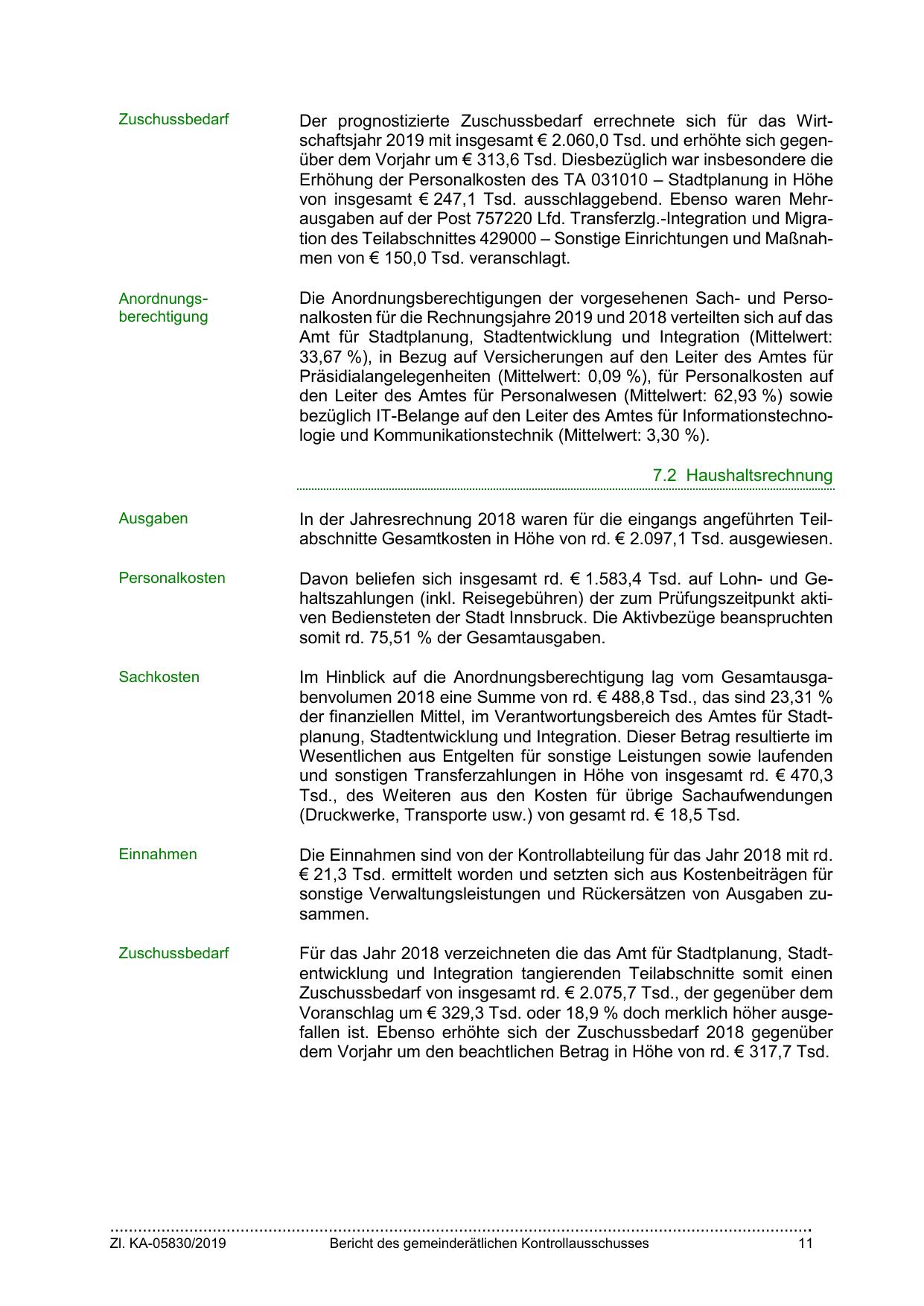 Zuschussbedarf von insgesamt rd. € 2.075,7 Tsd., der gegenüber dem