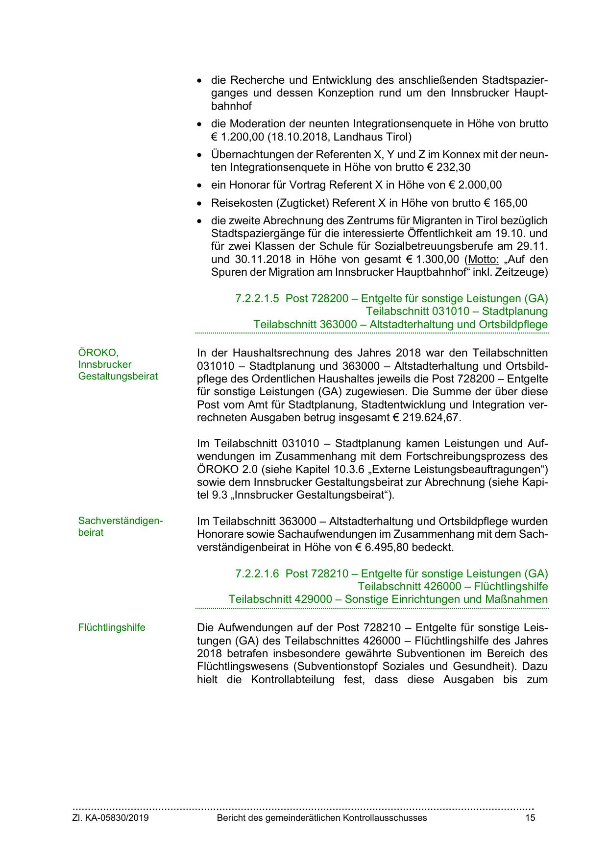 sowie dem Innsbrucker Gestaltungsbeirat zur Abrechnung (siehe Kapitel 9.3 „Innsbrucker Gestaltungsbeirat“).