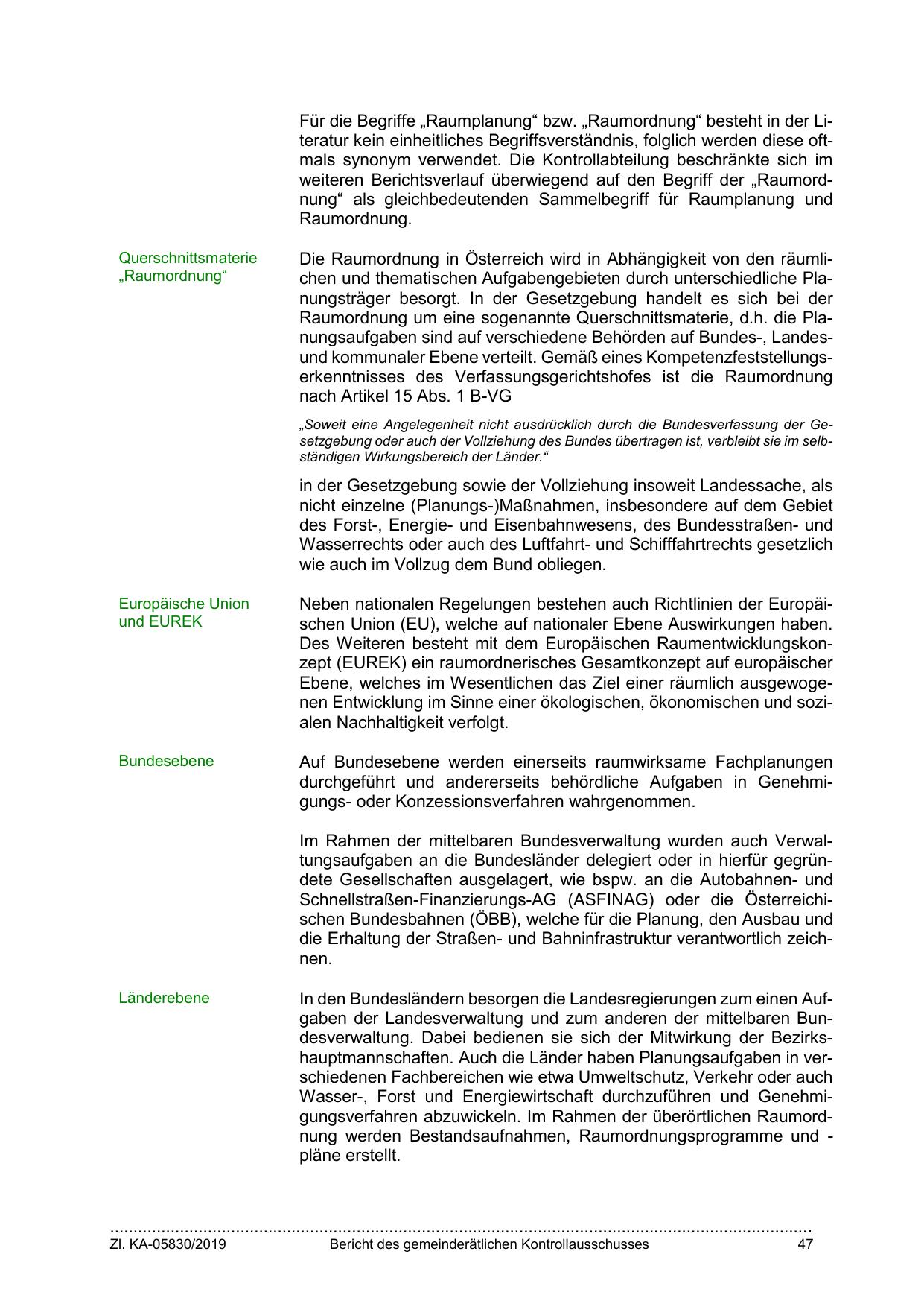 Raumordnung um eine sogenannte Querschnittsmaterie, d.h. die Planungsaufgaben sind auf verschiedene Behörden auf Bundes-, Landesund kommunaler Ebene verteilt. Gemäß eines Kompetenzfeststellungserkenntnisses des Verfassungsgerichtshofes ist die Raumordnung