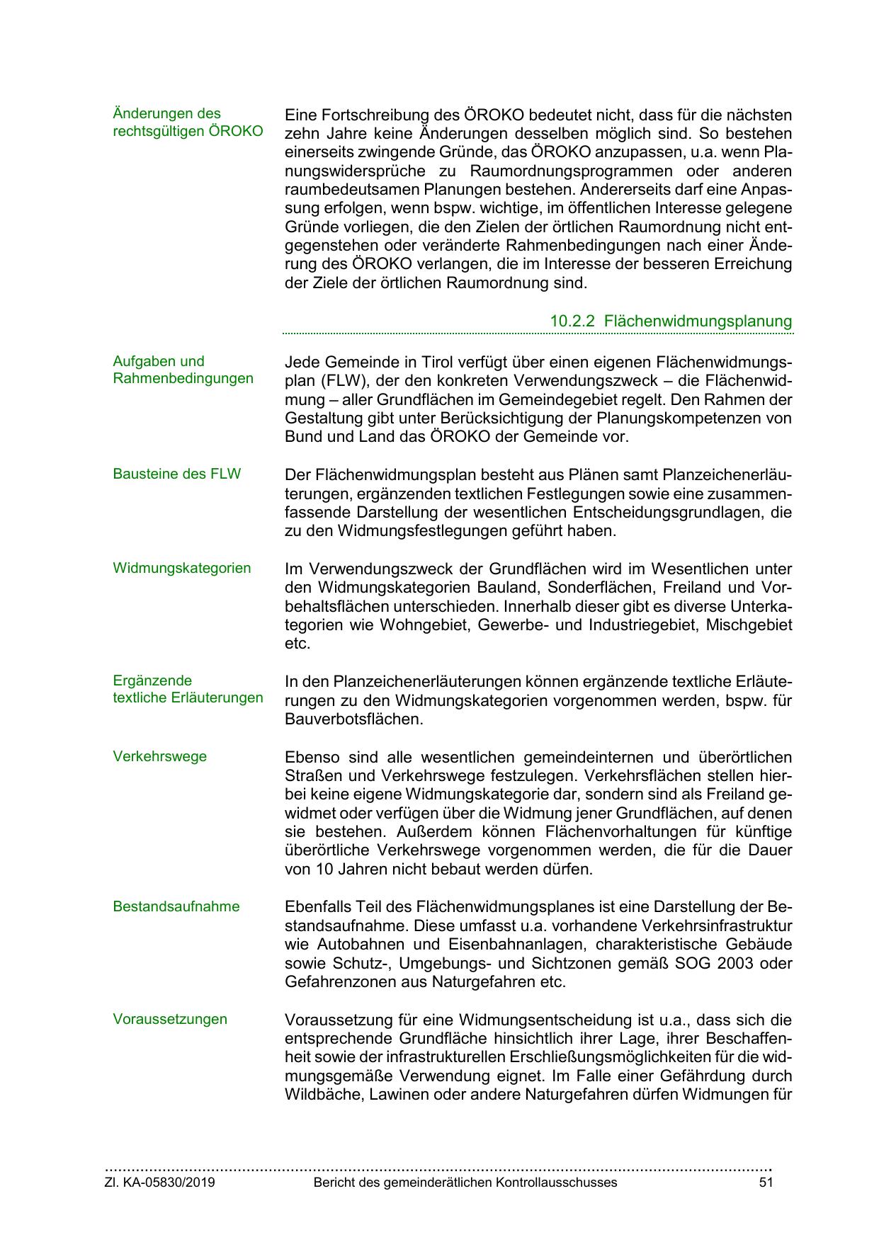 Jede Gemeinde in Tirol verfügt über einen eigenen Flächenwidmungsplan (FLW), der den konkreten Verwendungszweck – die Flächenwidmung – aller Grundflächen im Gemeindegebiet regelt. Den Rahmen der
