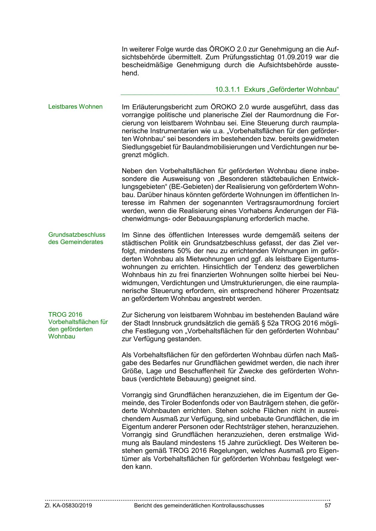 der Stadt Innsbruck grundsätzlich die gemäß § 52a TROG 2016 mögliche Festlegung von „Vorbehaltsflächen für den geförderten Wohnbau“