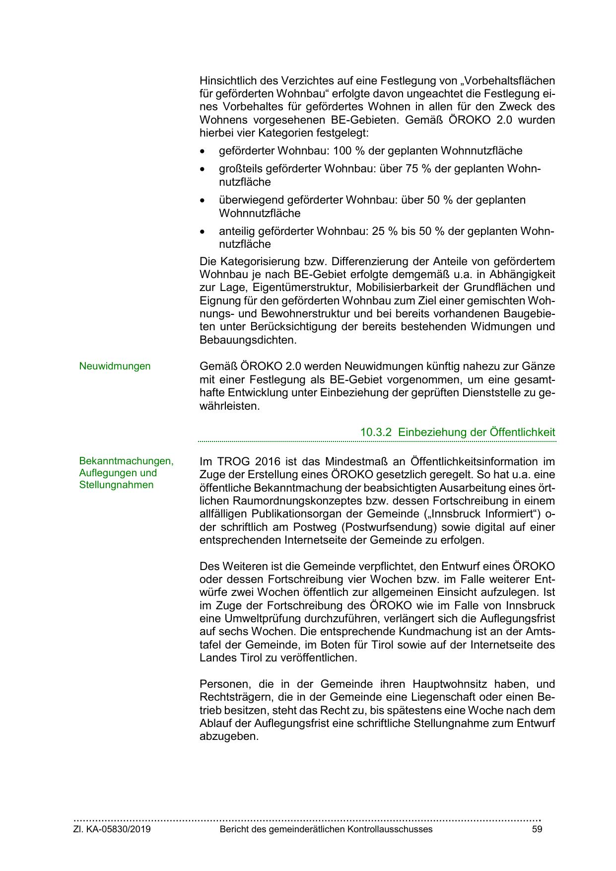 im Zuge der Fortschreibung des ÖROKO wie im Falle von Innsbruck