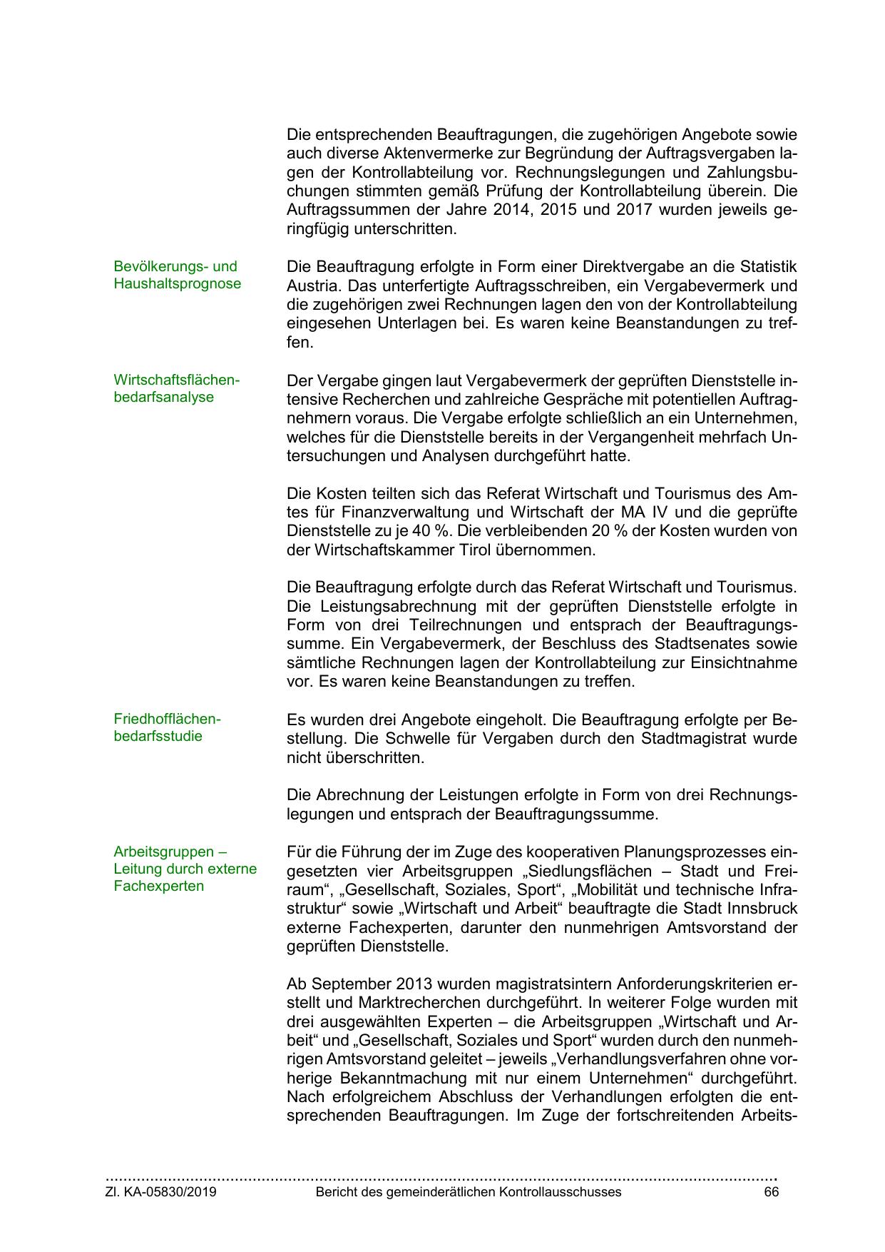 drei ausgewählten Experten – die Arbeitsgruppen „Wirtschaft und Arbeit“ und „Gesellschaft, Soziales und Sport“ wurden durch den nunmehrigen Amtsvorstand geleitet – jeweils „Verhandlungsverfahren ohne vorherige Bekanntmachung mit nur einem Unternehmen“ durchgeführt.