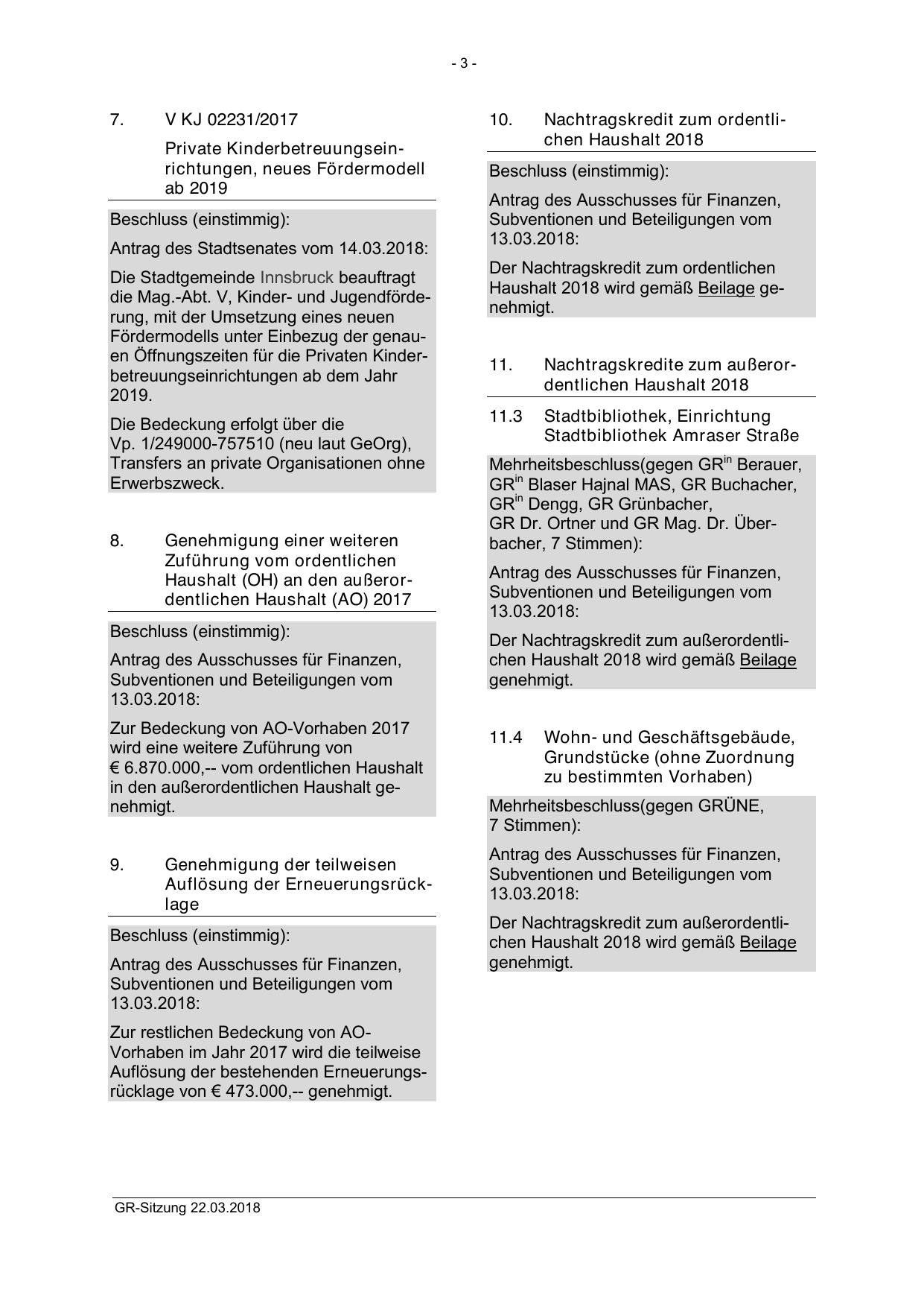 GR Dr. Ortner und GR Mag. Dr. Überbacher, 7 Stimmen):