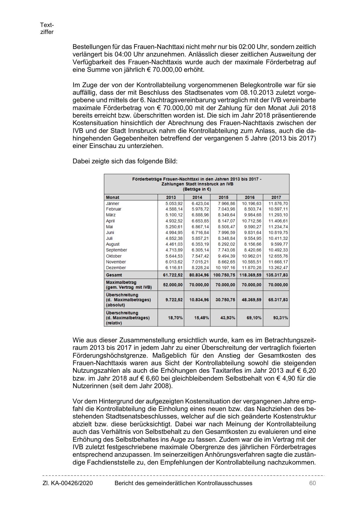 IVB und der Stadt Innsbruck nahm die Kontrollabteilung zum Anlass, auch die dahingehenden Gegebenheiten betreffend der vergangenen 5 Jahre (2013 bis 2017)