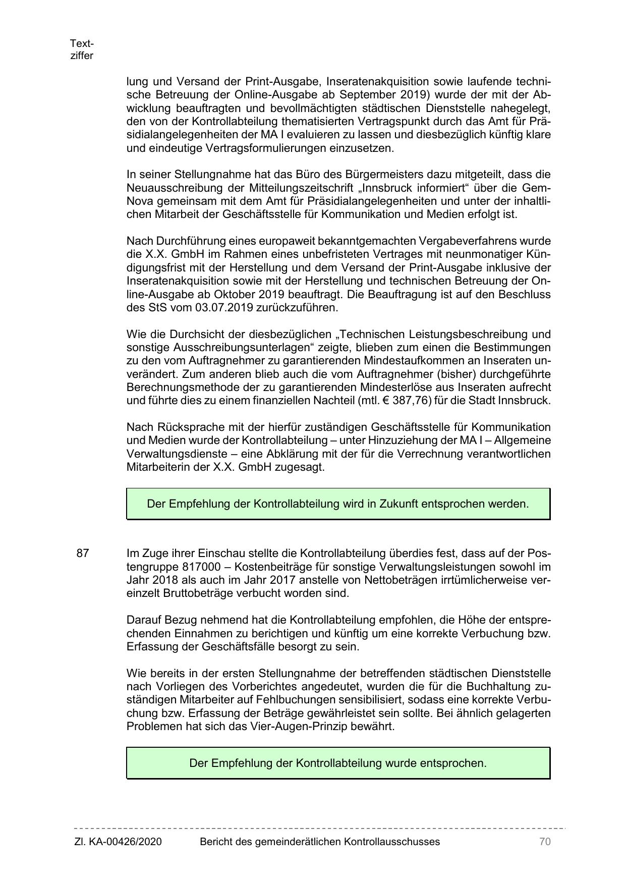 Neuausschreibung der Mitteilungszeitschrift „Innsbruck informiert“ über die GemNova gemeinsam mit dem Amt für Präsidialangelegenheiten und unter der inhaltlichen Mitarbeit der Geschäftsstelle für Kommunikation und Medien erfolgt ist.
