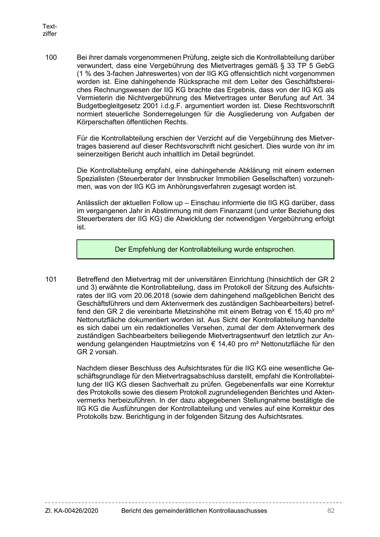 Spezialisten (Steuerberater der Innsbrucker Immobilien Gesellschaften) vorzunehmen, was von der IIG KG im Anhörungsverfahren zugesagt worden ist.