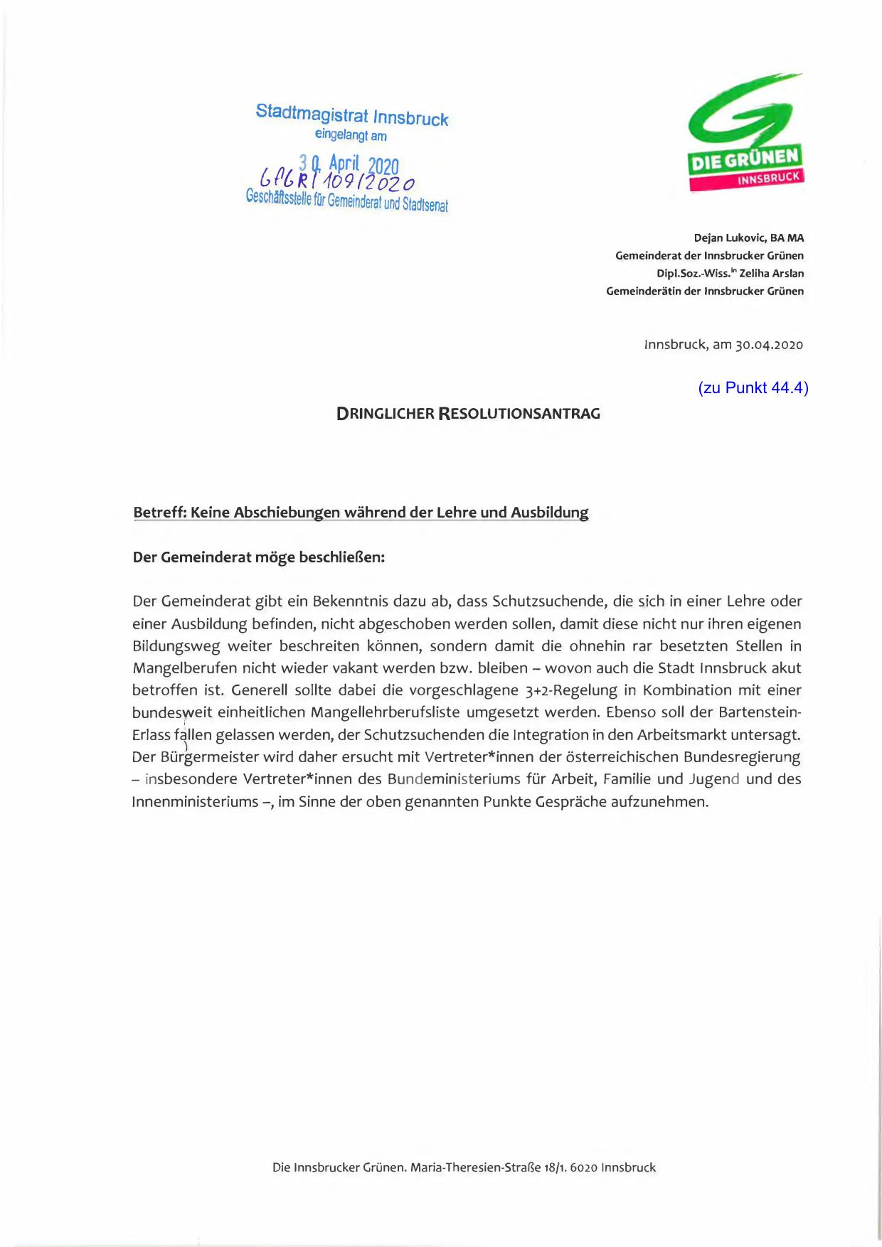 Der Bürkermeister wird daher ersucht mit Vertreter*innen der österreichischen Bundesregierung