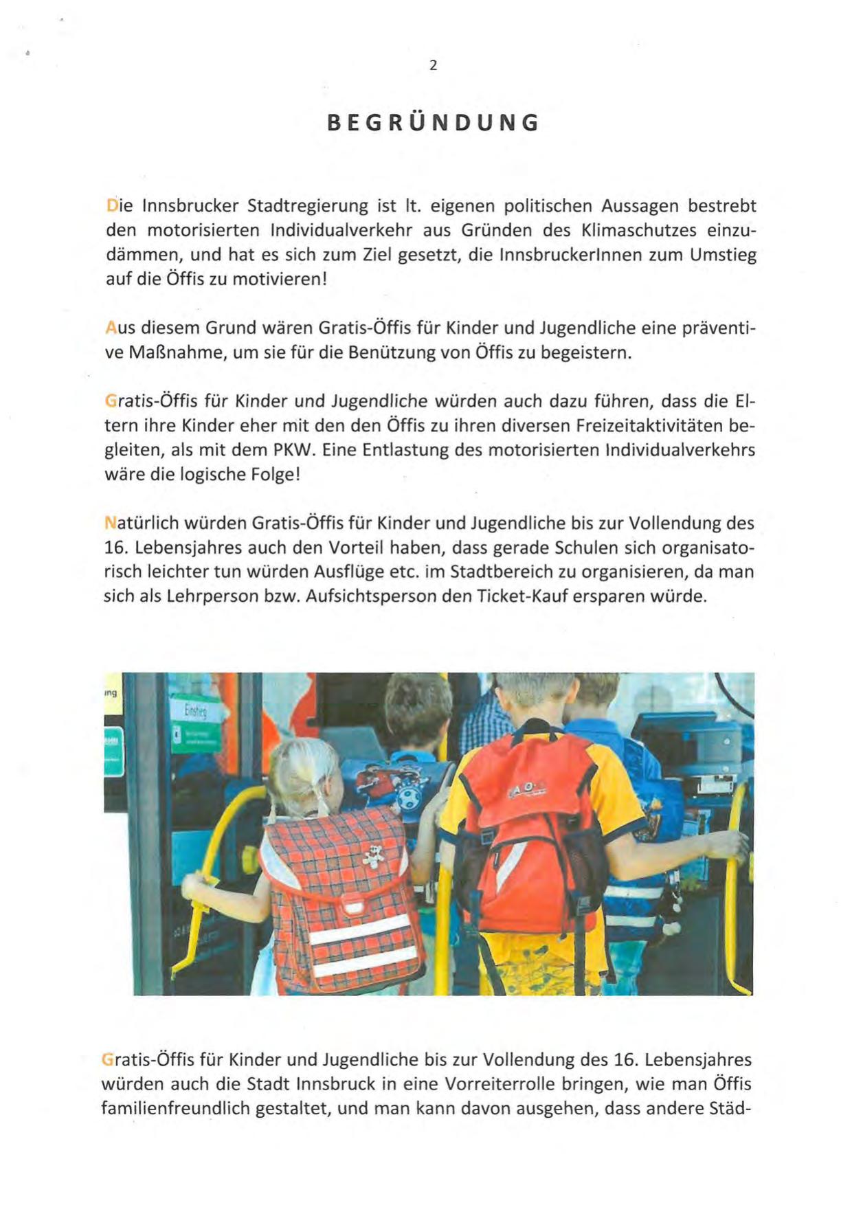 den motorisierten Individualverkehr aus Gründen des Klimaschutzes einzudämmen, und hat es sich zum Ziel gesetzt, die lnnsbruckerlnnen zum Umstieg