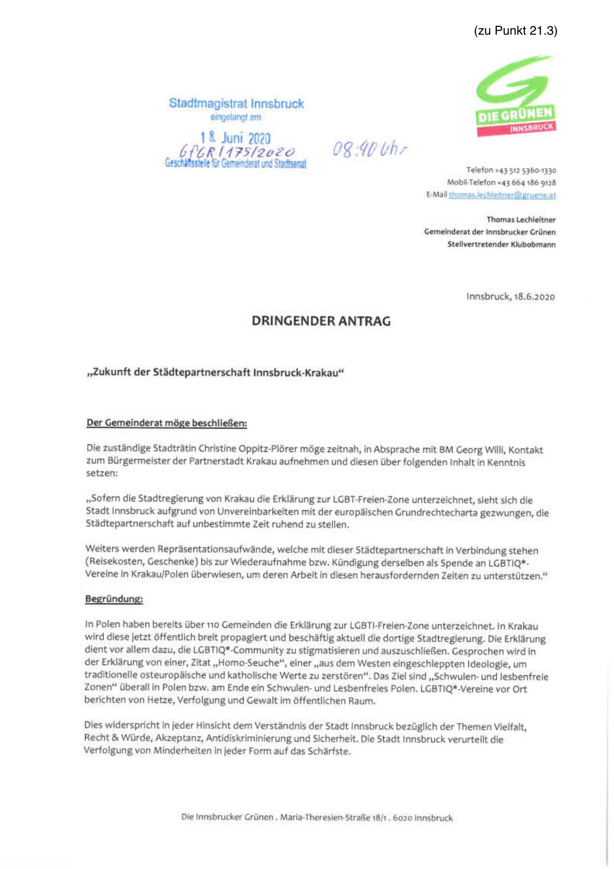 Dies widerspricht in jeder Hinsicht dem Verst ändnis der Stadt Innsbruck bez üglich der Themen Vielfalt,