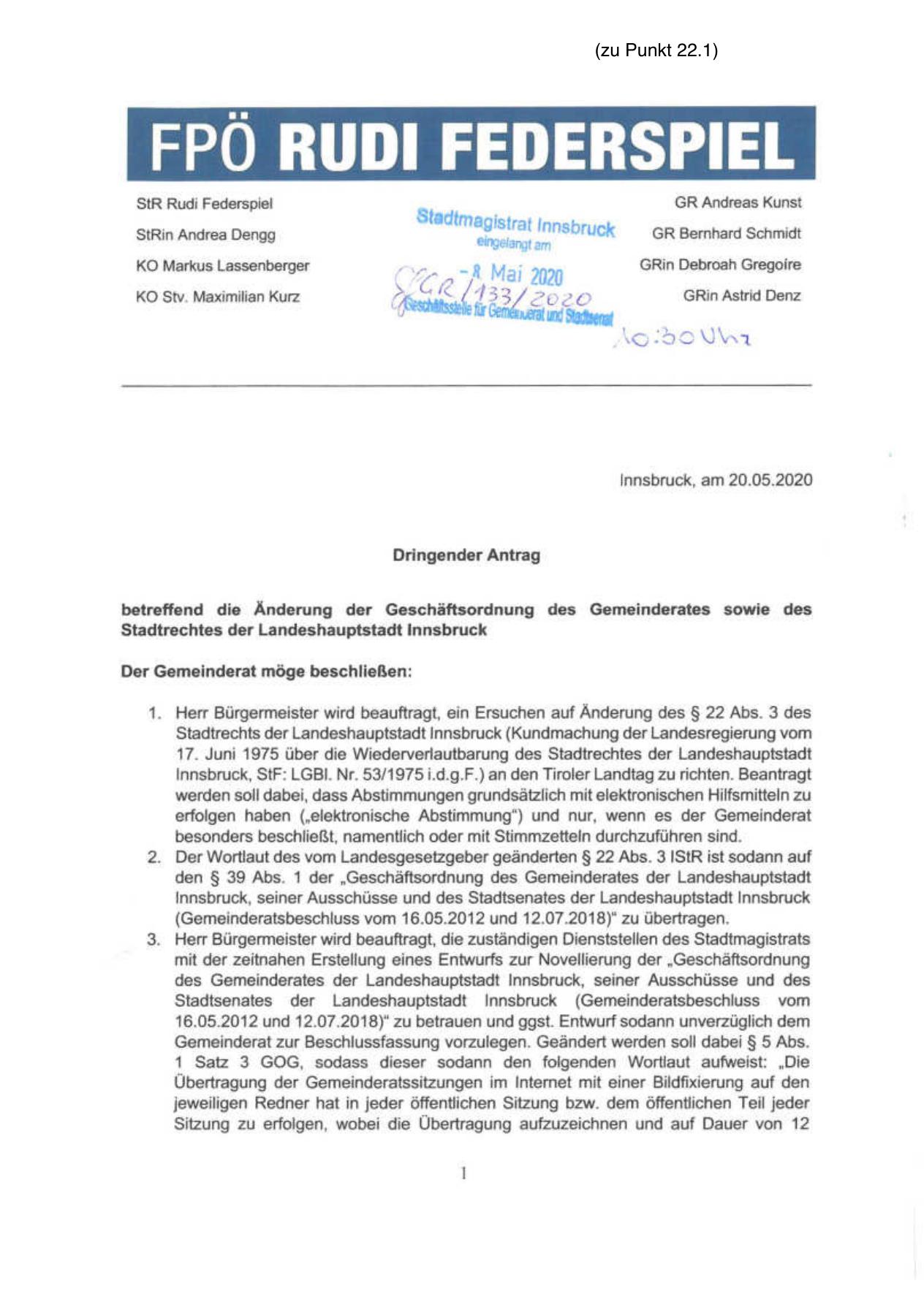 1. Herr Bürgermeister wird beauftragt, ein Ersuchen auf Änderung des § 22 Abs. 3 des