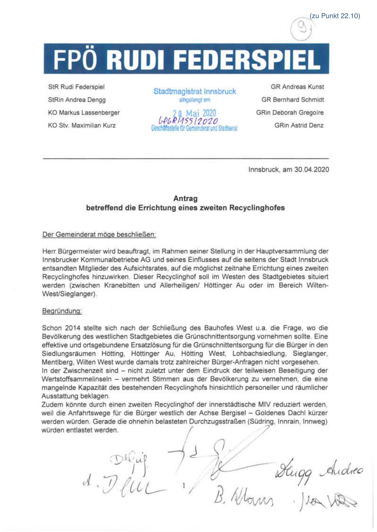 betreffend die Errichtung eines zweiten Recyclinghofes