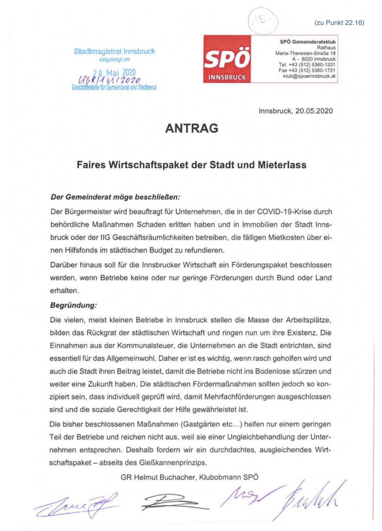 behördliche Maßnahmen Schaden erlitten haben und in Immobilien der Stadt Innsbruck oder der IIG Geschä ftsräumlichkeiten betreiben, die fälligen Mietkosten über ei-