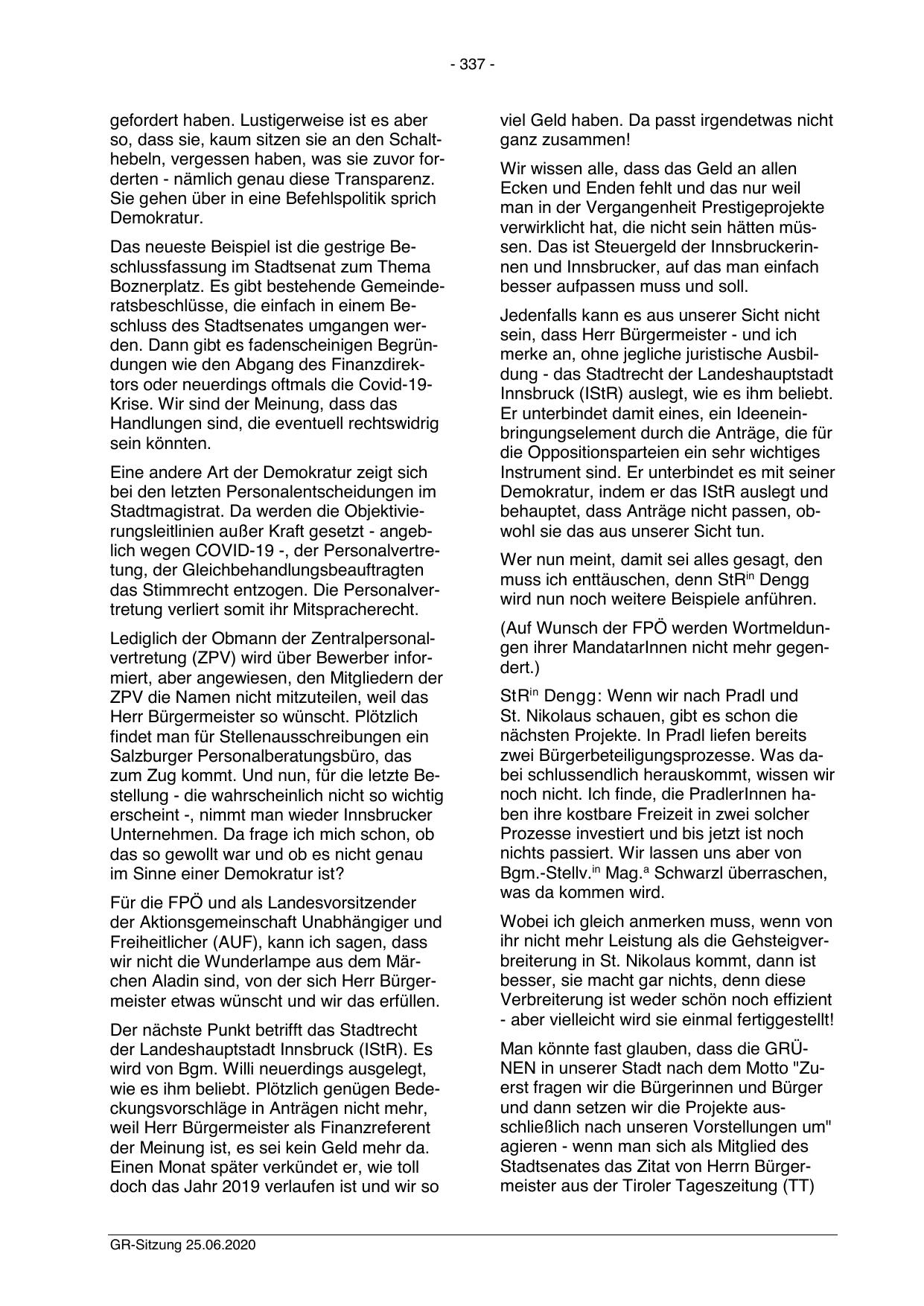 Stadtsenates das Zitat von Herrn Bürgermeister aus der Tiroler Tageszeitung (TT)
