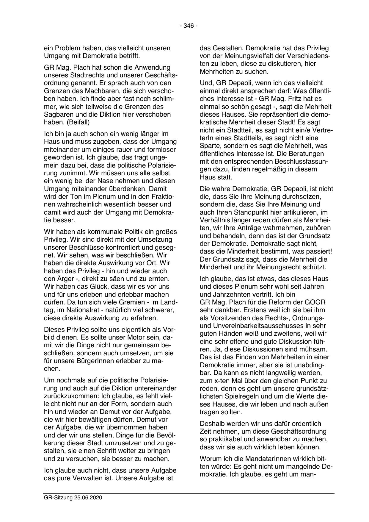 Die wahre Demokratie, GR Depaoli, ist nicht