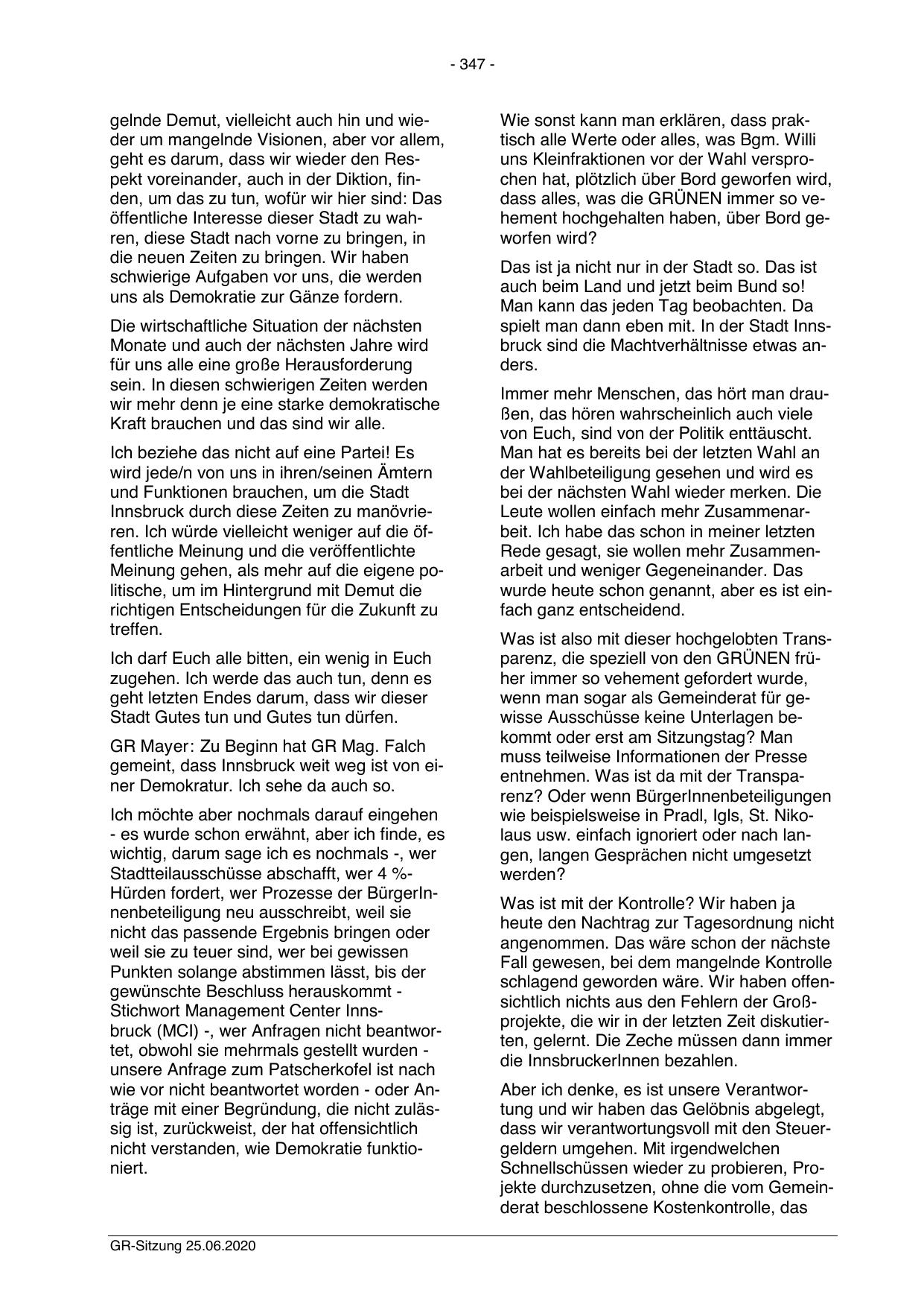 GR Mayer: Zu Beginn hat GR Mag. Falch