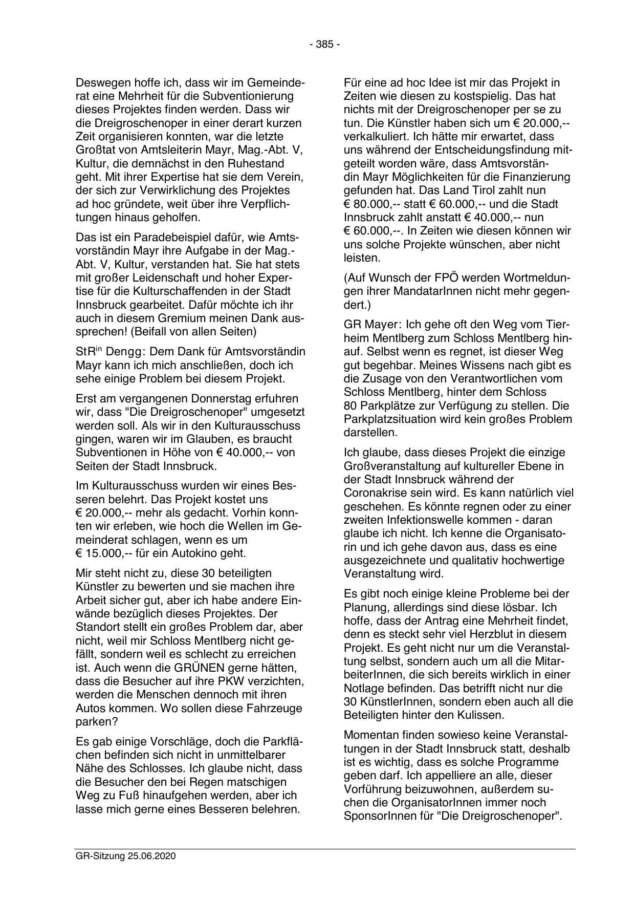 (Auf Wunsch der FPÖ werden Wortmeldungen ihrer MandatarInnen nicht mehr gegendert.)