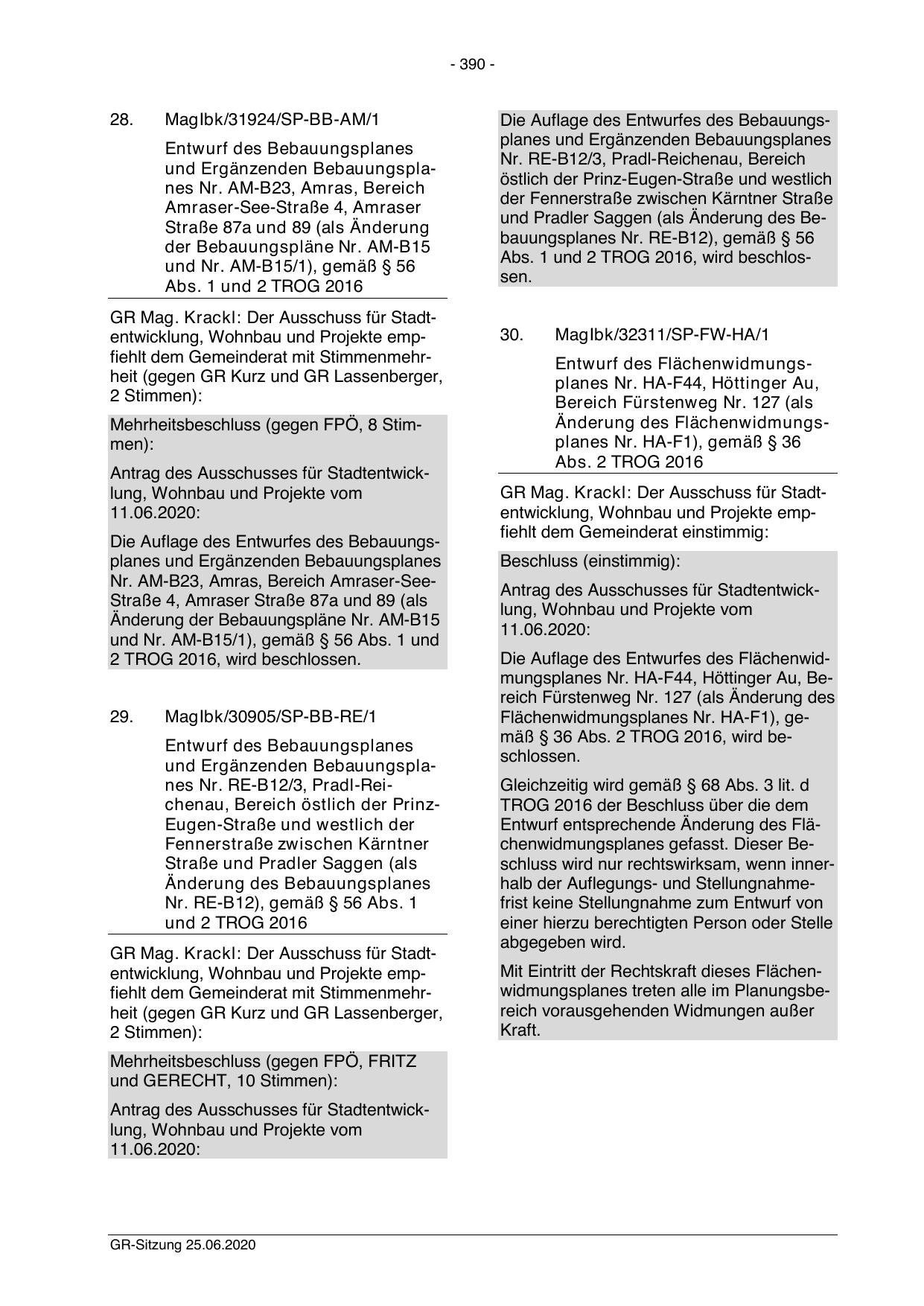 Mehrheitsbeschluss (gegen FPÖ, 8 Stimmen):